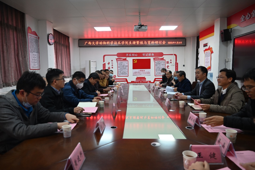 1月4日下午第一阶段“产学研用合作研讨”在公司302会议室举行,由公司何家康副经理主持。会议邀请了河南守望之境生物技术公司技术总监刘红波博士,以及广西扬翔集团、广西桂垦牧业和广西麒源牧业等公司负责人和技术总监,围绕生物育种主题开展产学研合作研讨,就动物克隆技术推动品种改良的优势、问题和前景等进行深入讨论。