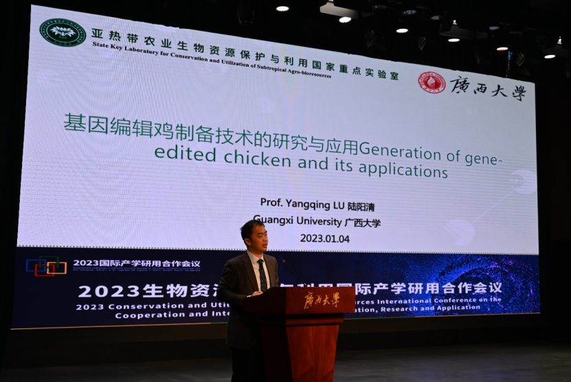 其中, “生物资源保护与利用产学研用国际合作研讨会”由yl6809永利联合林公司承办,分论坛第一阶段的学术报告由我院常务副经理陆阳清教授主持。共邀请了国内外5位专家进行学术报告,围绕畜禽育种和健康养殖展开研讨。来自加拿大阿尔伯塔大学Leluo Guan教授从提高牛可持续发展的新型技术方面做了“提高牛生产可持续性的新型组学解决方案”的精彩报告;河南守望之境生物技术公司刘红波博士的报告“体细胞核移植技术在农业、生物医学及伴侣动物克隆中的商业应用”对近年来团队利用克隆技术成功克隆的牛、羊、宠物等动物的产业化与应用进行了展示;公司陆阳清教授的“基因编辑鸡的研究与应用”报告,充分展示了课题组近年来在国内外首次建立了高效的鸡原始生殖细胞分离培养体系,为家禽种质资源保存和新品种创制提供了细胞平台。针对畜禽健康养殖,来自美国密苏里大学的Wenjun Ma教授做了题为“北美猪流感:现状、挑战和跨种感染”,从猪流感的流行现状、跨种传播等进行了深入的讲解,并提出预警机制。中国农业大学徐闯教授根据多年来从事奶牛群发代谢病的致病机理、早期预警、群防群控、技术标准等技术产品的研发推广工作,进行了“天然植物提取物在围产期奶牛代谢病防控中的应用”的精彩报告。
