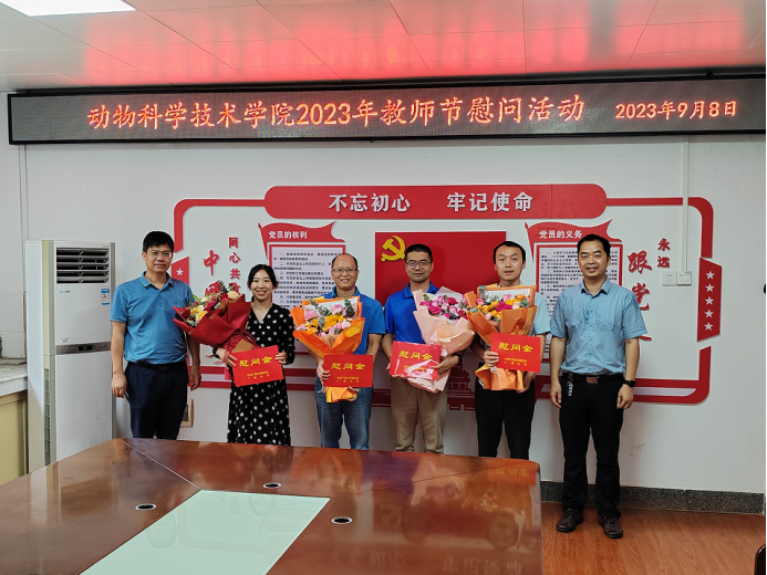 39个教师节来临之际,2023年9月8日上午,公司党委书记韦小强、经理陆阳清慰问教职工代表赵云翔、韦祖樟、宋子仪和李珣四名老师,为他们送上鲜花和慰问金,向他们致以节日的祝贺,并通过他们向全院教师致以节日的祝福。希望全院教职工不忘立德树人初心,牢记为党育人为国育才使命,共同建设好yl6809永利,为培养新时代“五有”领军型人才作出更大贡献。慰问活动由副经理宁鹏飞主持。