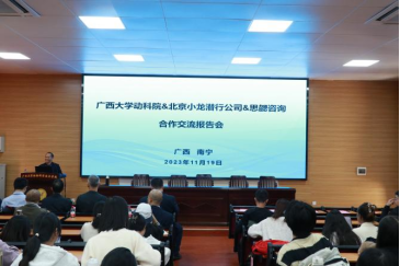 11月19日下午15时,北京小龙潜行科技有限公司、思勰咨询“产学研”合作交流报告会在公司318报告厅举行。本次交流会邀请了北京小龙潜行科技有限公司CEO鞠铁柱、研发总监张兴福、产品化总监黄平和思勰咨询创始人陈兴,共同探讨了生猪养殖数智化的发展趋势和挑战。陆阳清经理、何家康副经理以及近百名师生参加交流会,会议由兰干球教授主持。