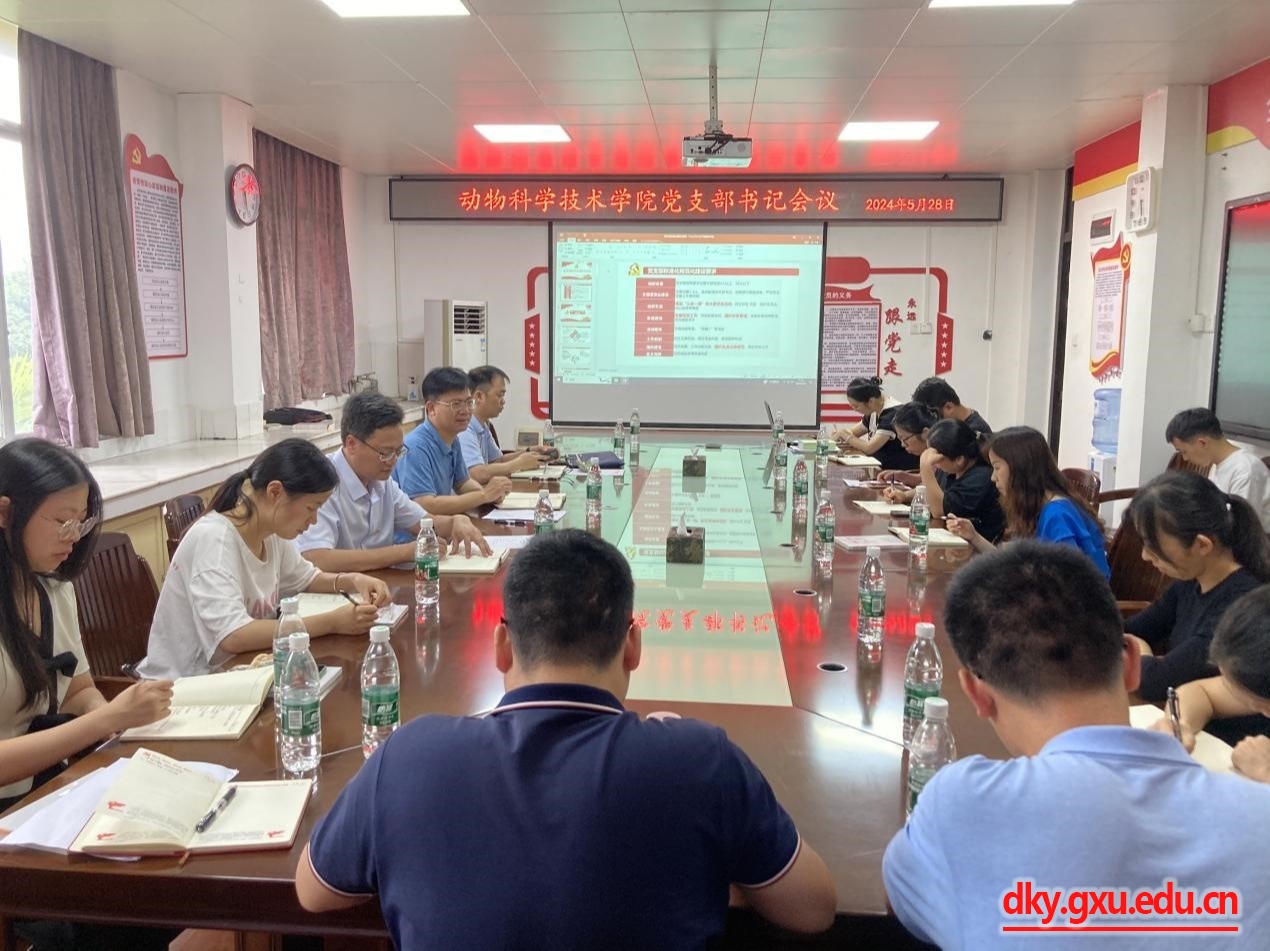 5月28日下午,yl6809永利召开全体党支部书记会议,专题研究党支部标准化规范化建设。动物科学技术公司党委书记韦小强主持会议。