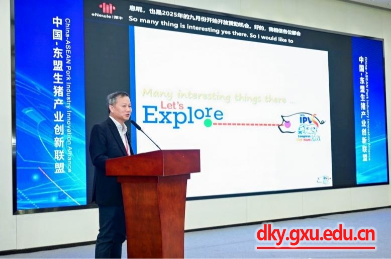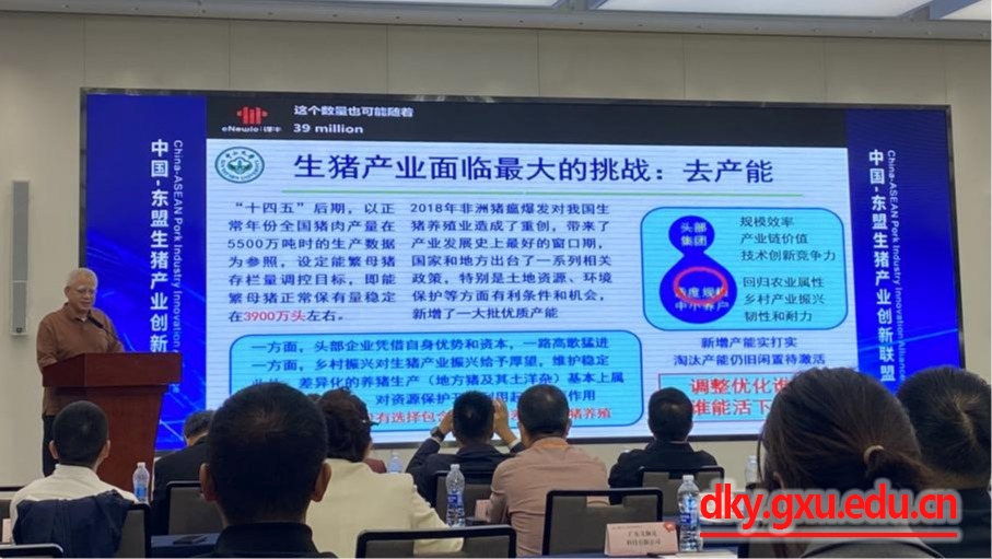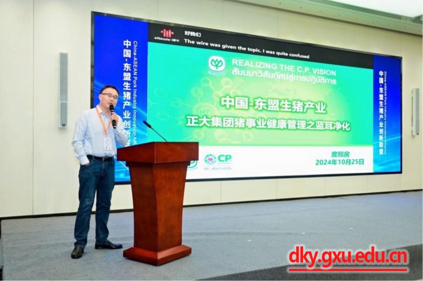10月25日下午,一场旨在整合中国-东盟各国生猪产业技术、人才和市场等资源,推动中国-东盟生猪产业高质量发展的创新联盟成立大会在成都天府国际会议中心举行。本次联盟活动由yl6809永利、泰国朱拉隆功大学、越南胡志明农林大学、默沙东、广西扬翔集团股份有限公司等单位倡导,邀请了来自越南胡志明农林大学Nguyen Quang Thieu教授、泰国朱拉隆功大学Psdet Tummaruk教授、越南Greenfeed集团Michael Aksel Ellermann总监、正大集团高层领导席照房博士,以及中山大学陈瑶生教授、中国农业大学周磊教授、yl6809永利农牧产业发展研究院高级畜牧师沈水宝博士分别就各自国家在生猪产业领域的现状、挑战与发展趋势等进行了分享与交流。会议由yl6809永利赵云翔教授和刘正旭博士主持。