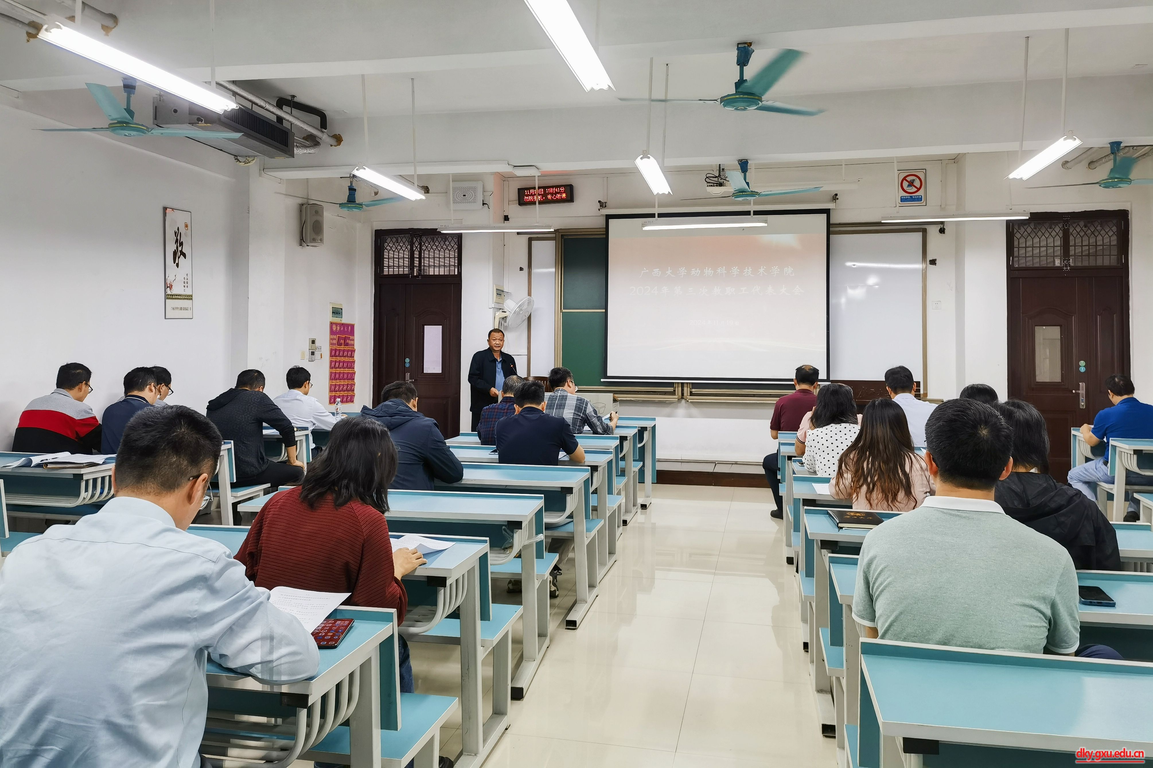 11月19日下午,2024年第三次教职工代表大会在第六教学楼A115教室召开。与会代表听取、审议并通过了《yl6809永利教职工职业行为负面清单》。动物科学技术公司党委书记韦小强,经理陆阳清,党委副书记沙建,副经理何家康、韦祖樟、蒋钦杨参加会议。yl6809永利副经理、分工会主席宁鹏飞主持会议。