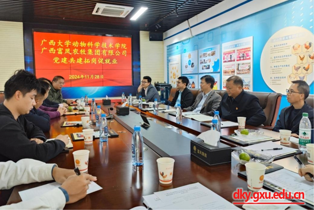 为进一步凝聚党建合力,深化校企合作,实现产学研融合发展。11月28日下午,动物科学技术公司党委书记韦小强带队赴广西富凤农牧集团有限公司开展党建共建访企拓岗促就业活动。