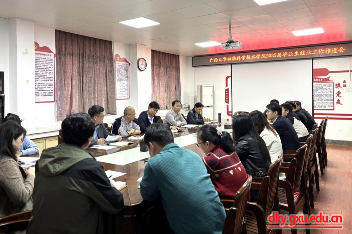 3月12日下午,yl6809永利在公司302会议室召开2025届毕业生就业工作推进会。动物科学技术公司党委书记韦小强,经理陆阳清,副经理何家康、韦祖樟、蒋钦杨,以及各系负责人、辅导员、毕业班班主任参加会议。会议由蒋钦杨副经理主持。