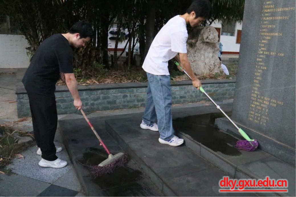 “王丕建教授毕生致力于动物繁殖学的产学研结合,被国际水牛大会授予“科学先驱者”奖章和奖状。”在王丕建教授雕像前,动物医学专业2022级本科生陈廷豪同学为大家讲述了这位学术先驱的故事。擦拭雕像、清扫环境、敬献鲜花、鞠躬默哀……师生们怀着无比崇敬的心情站在雕像前,与王丕建教授进行了一场跨时空的心灵沟通。