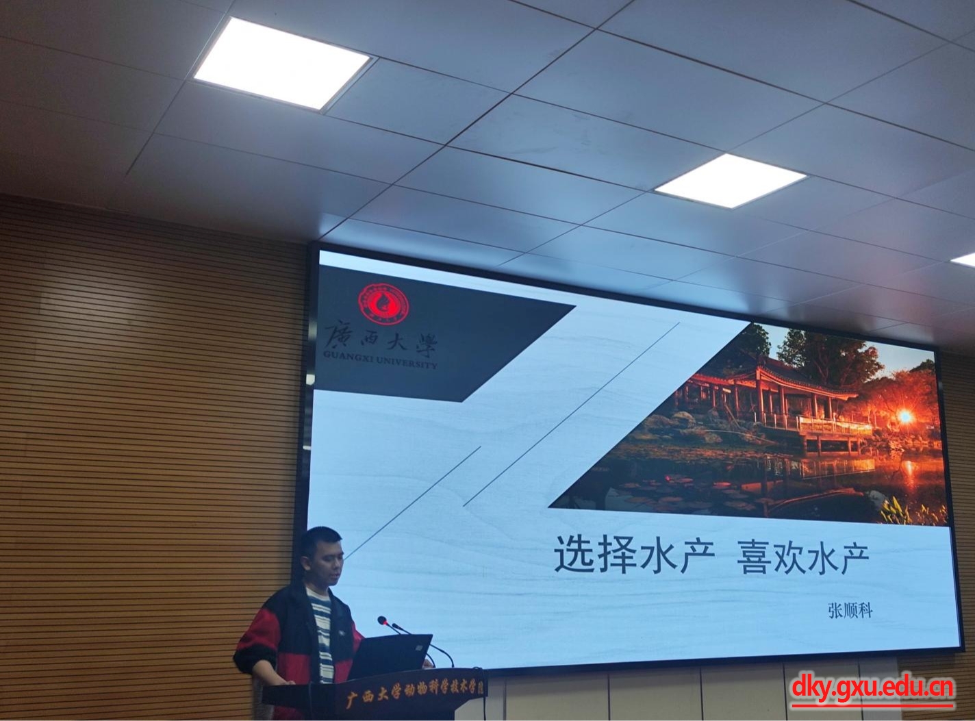 2024级水产专业硕士研究生张顺科同学分享自己在水产方面的学习和科研体验,讲述了学习水产的心路历程,并热情邀请学弟学妹们加入水产大家庭。