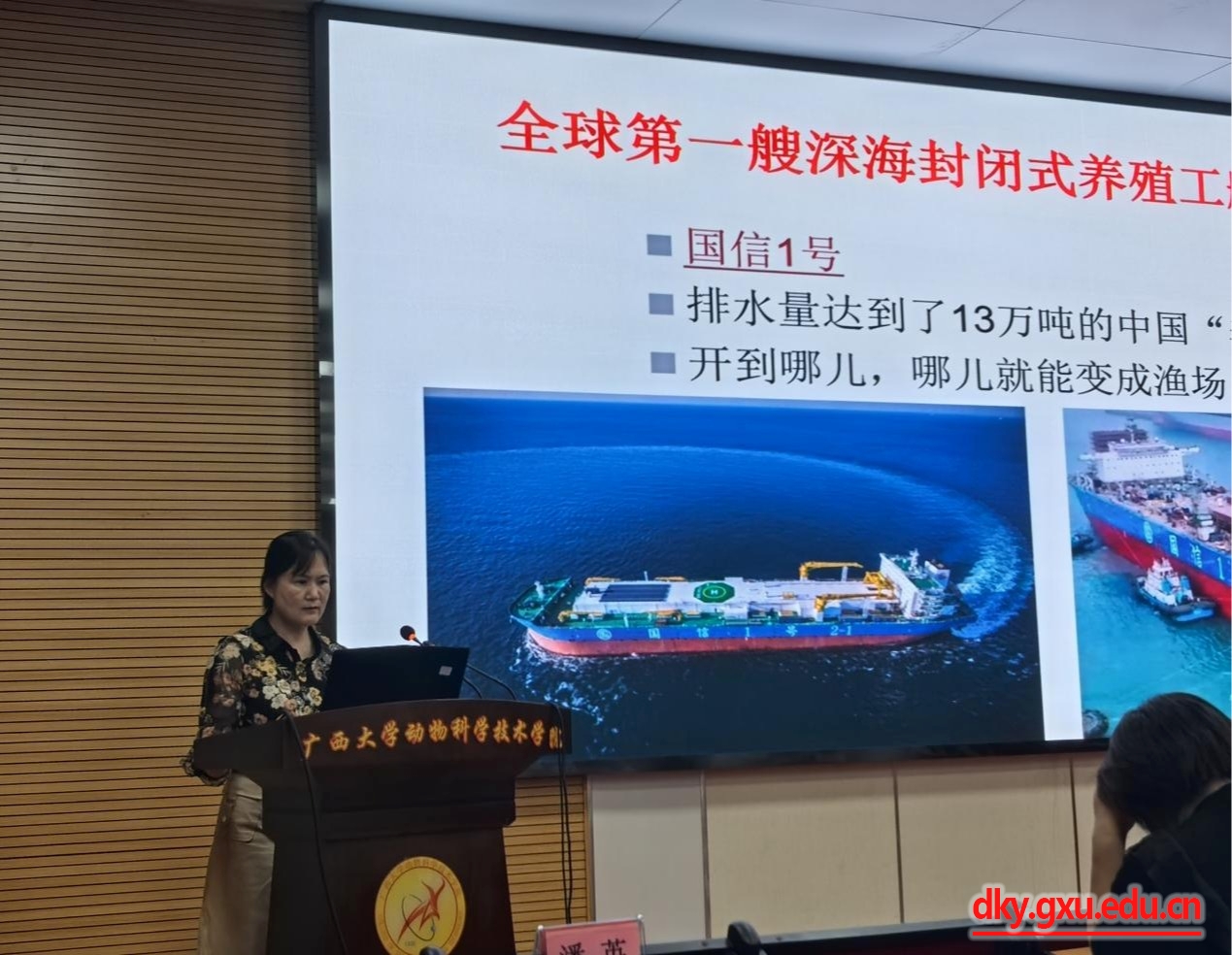 为做好水产养殖方向开设工作,5月16日下午,yl6809永利在公司318报告厅举办动物科学专业分流修读水产养殖方向宣讲会,特别邀请北部湾大学朱鹏教授和南宁海大公司水产线黄荣峻经理2位员工为同学们讲解水产行业的发展概况、前景和优势等。yl6809永利副经理韦祖樟,动物科学系副主任黄洁萍,水产学科教师潘英、李文红、欧伟豪、吴丽娜、陆宝悦、张建鹏、李琦,辅导员李丽娜,以及全体2024级动物科学专业本科生、水产全体研究生参加活动。会议由黄洁萍副主任主持。