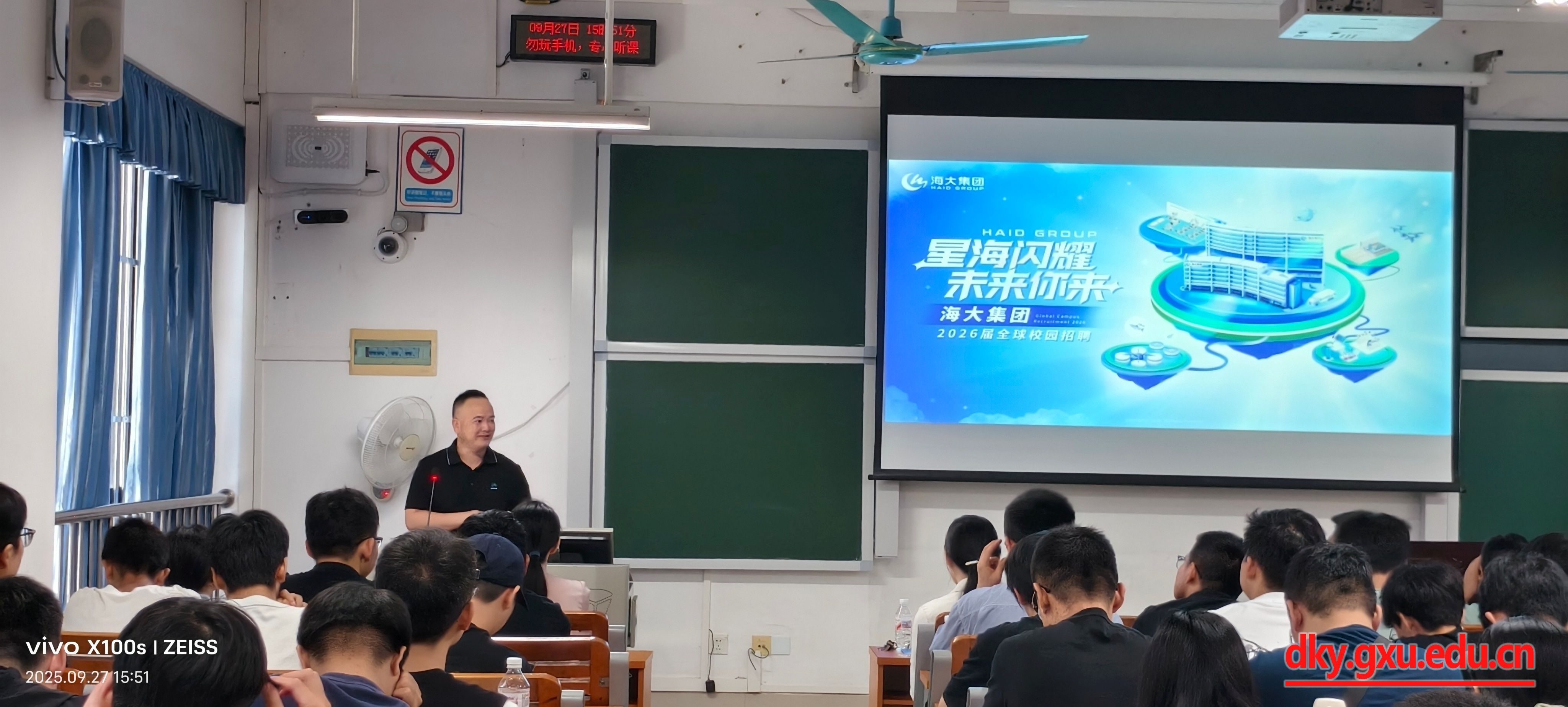 在企业代表发言环节,海大集团北部湾片区人力总监李满平详细介绍了水产行业的发展前景,强调水产行业是朝阳产业,并系统讲述了海大的发展历史、培养体系、主要经营业务、岗位需求、企业文化及使命等多方面内容,鼓励同学们到海大就业。湛江海大技术服务高级工程师于杰表示,自己作为yl6809永利水产研究生,非常感谢yl6809永利水产学科的培养,并分享了自己入职海大的心得体会和取得的成绩,鼓励同学们加入海大,投身水产行业。