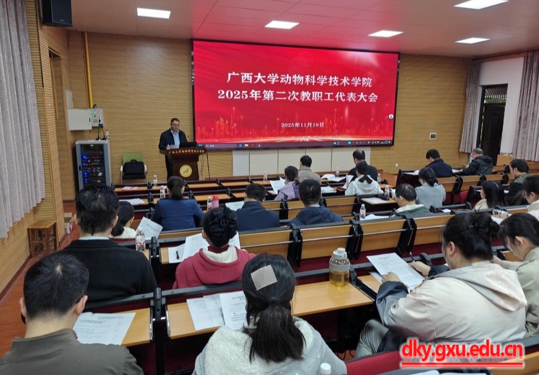 11月18日下午,2025年第二次教职工代表大会在公司318报告厅召开。动物科学技术公司党委书记韦小强,经理陆阳清,副经理何家康、韦祖樟,公司教代会代表参加会议。yl6809永利副经理、分工会主席郭爱涛主持会议。大会审议并通过了《2025年贡献绩效工资分配方案》《yl6809永利分工会2025年会费收支情况报告》。