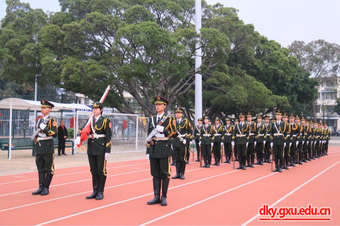 在全场师生的注目下,英姿飒爽的国旗护卫队队员身着笔挺制服,迈着整齐划一、铿锵有力的步伐,护送鲜艳的五星红旗进场。“起来,不愿做奴隶的人们,把我们的血肉,筑成我们新的长城……”当《义勇军进行曲》激昂的旋律响彻田径场,全场师生自觉肃立,齐声高唱,目光紧紧追随那抹象征民族精神的中国红,看着它在朝阳的映照下冉冉升起,飘扬在校园上空。