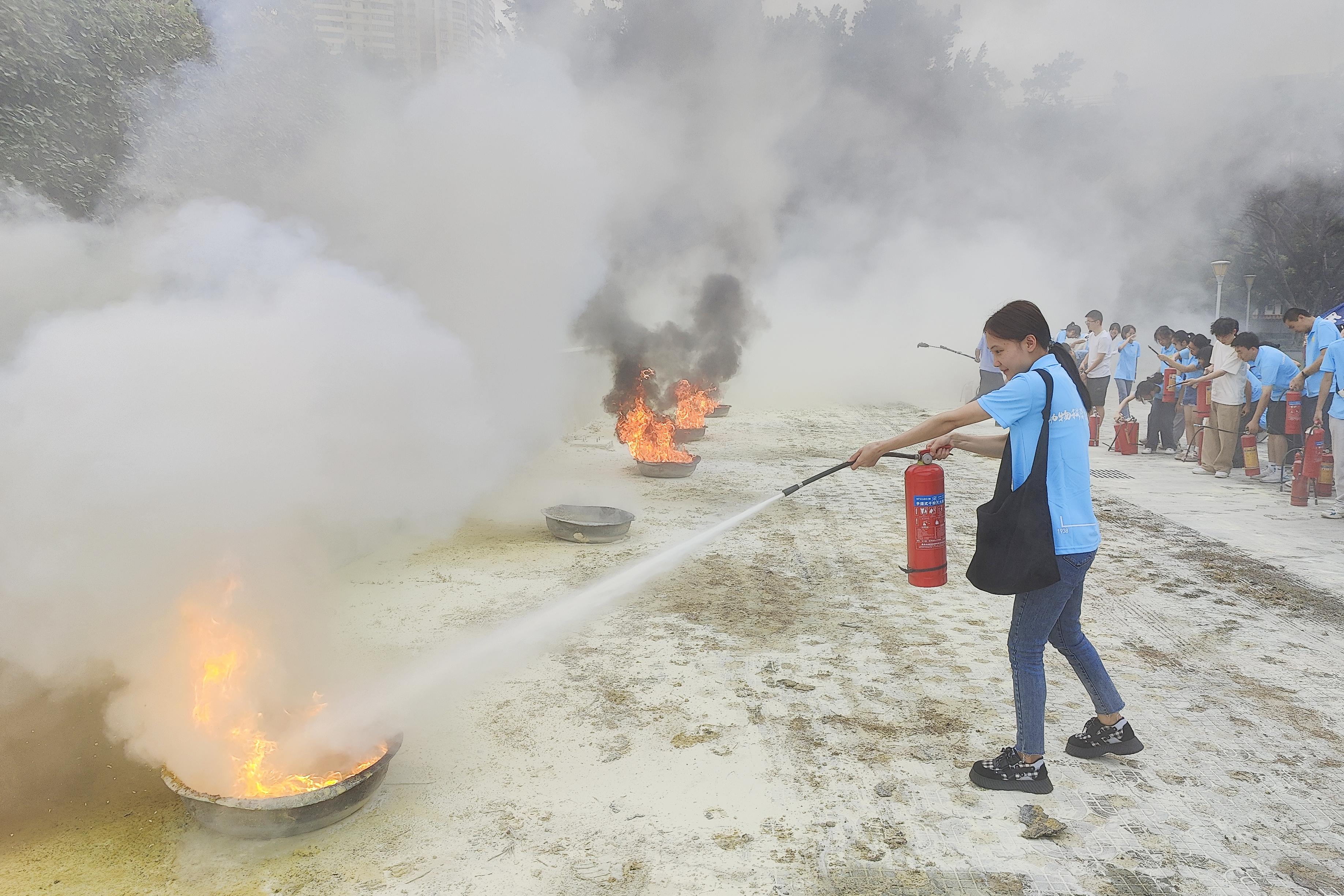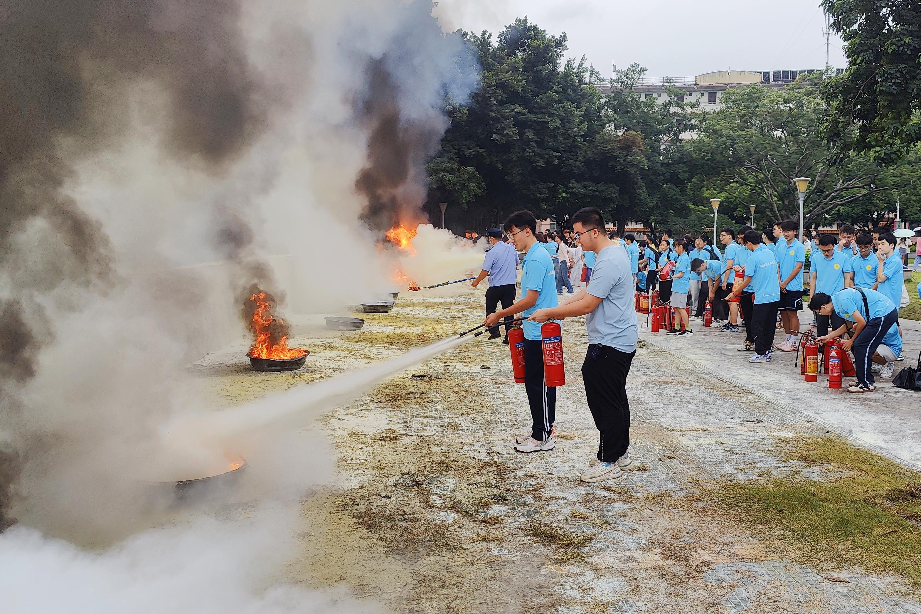 之后,同学们在现场进行了灭火器的操作演练。