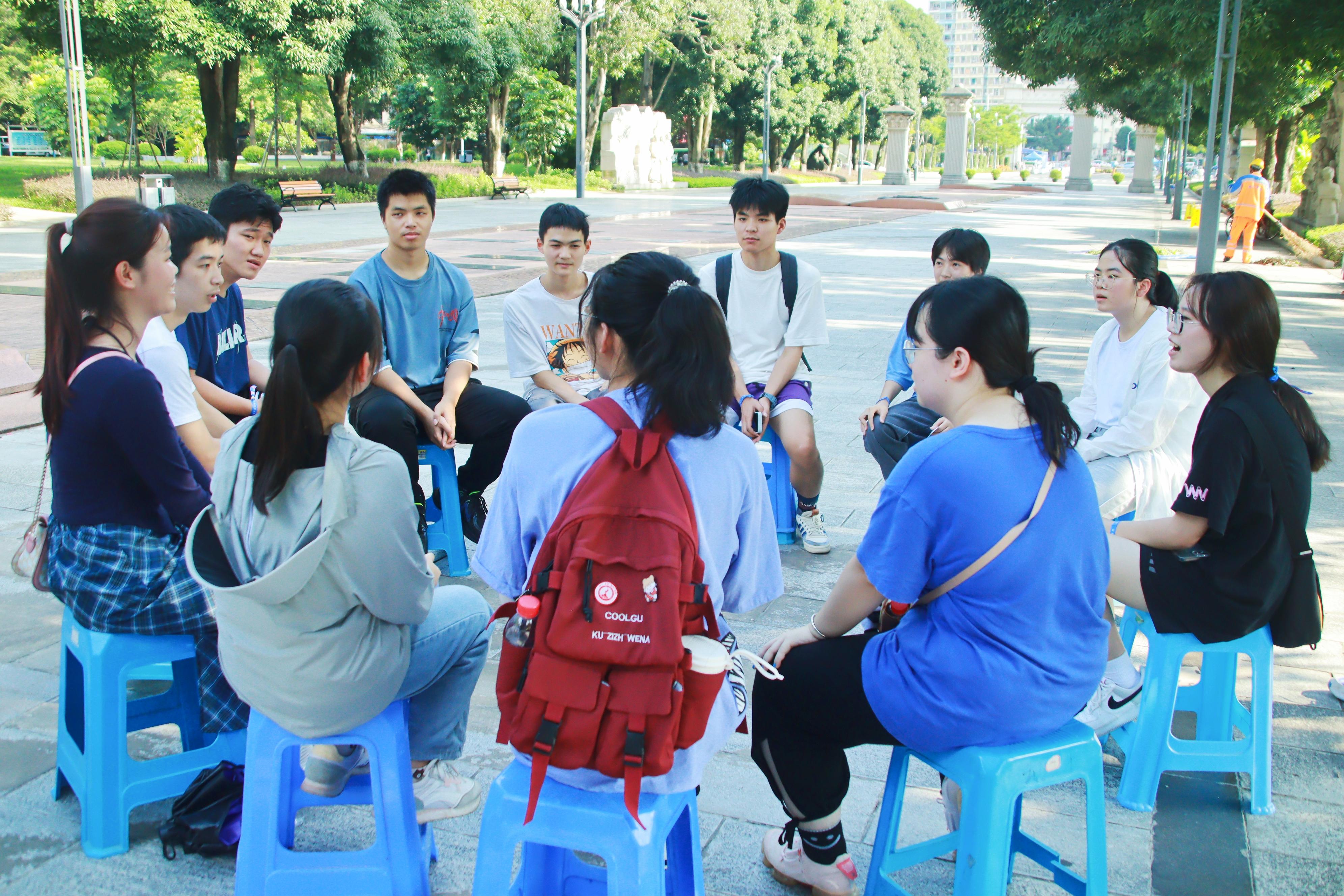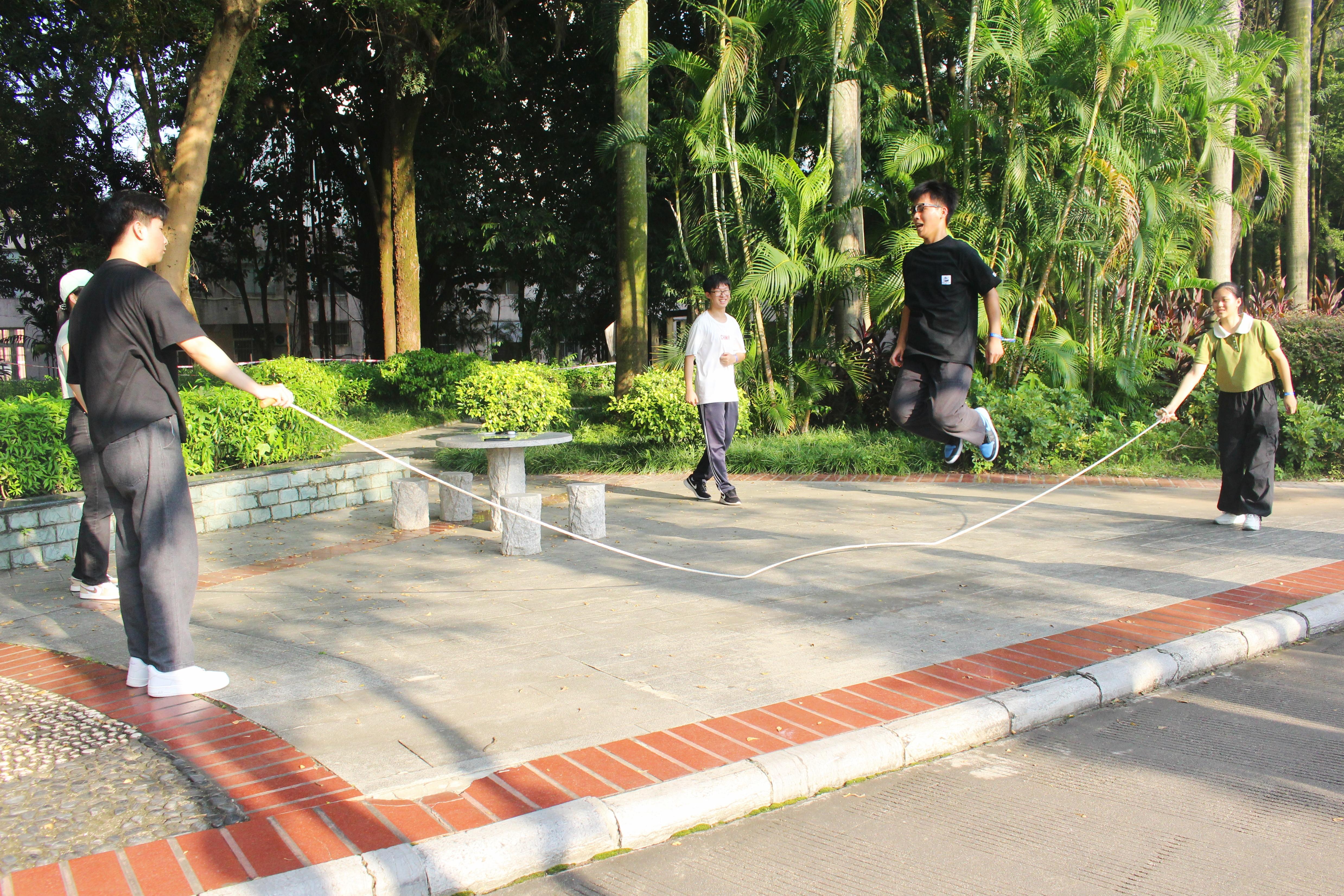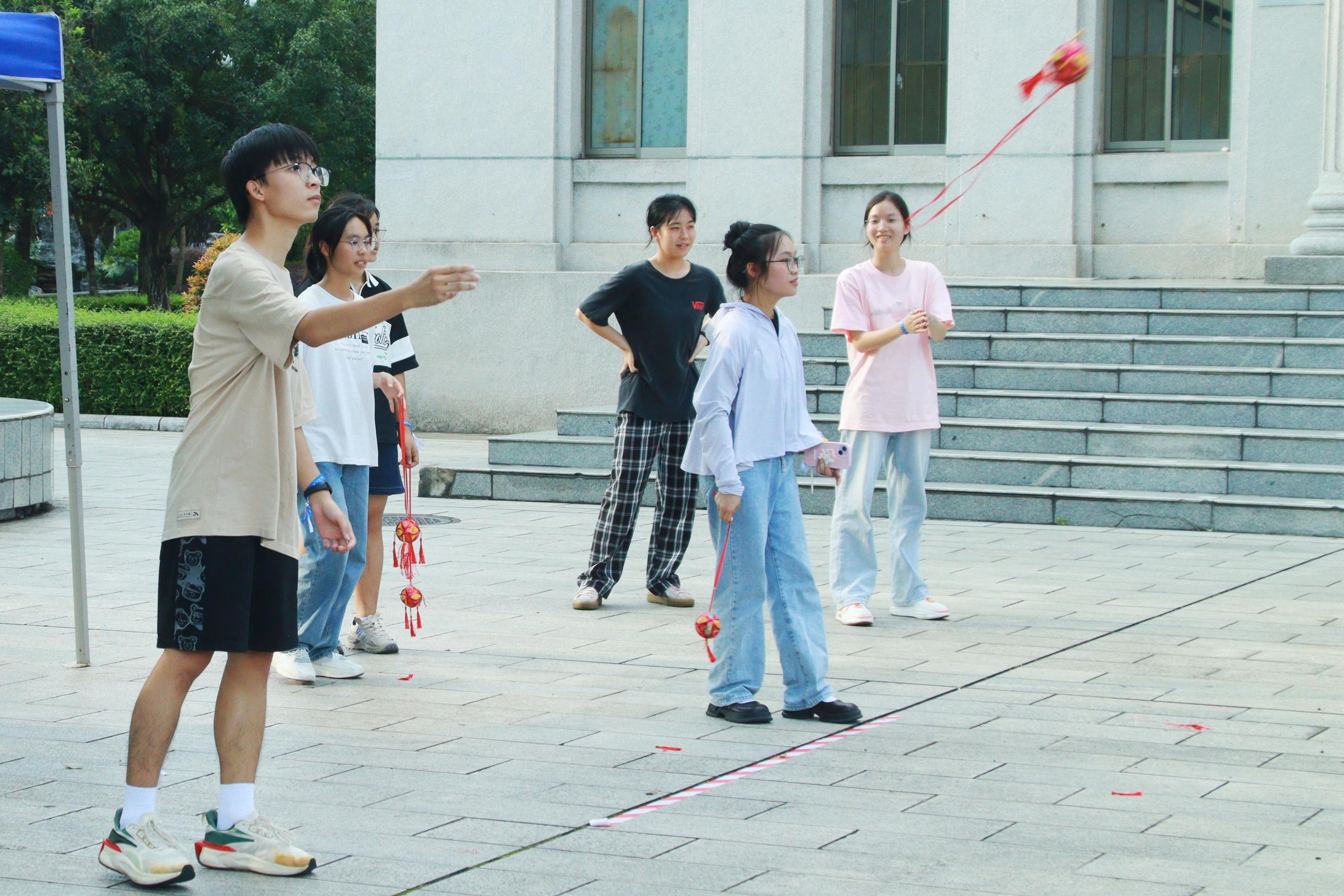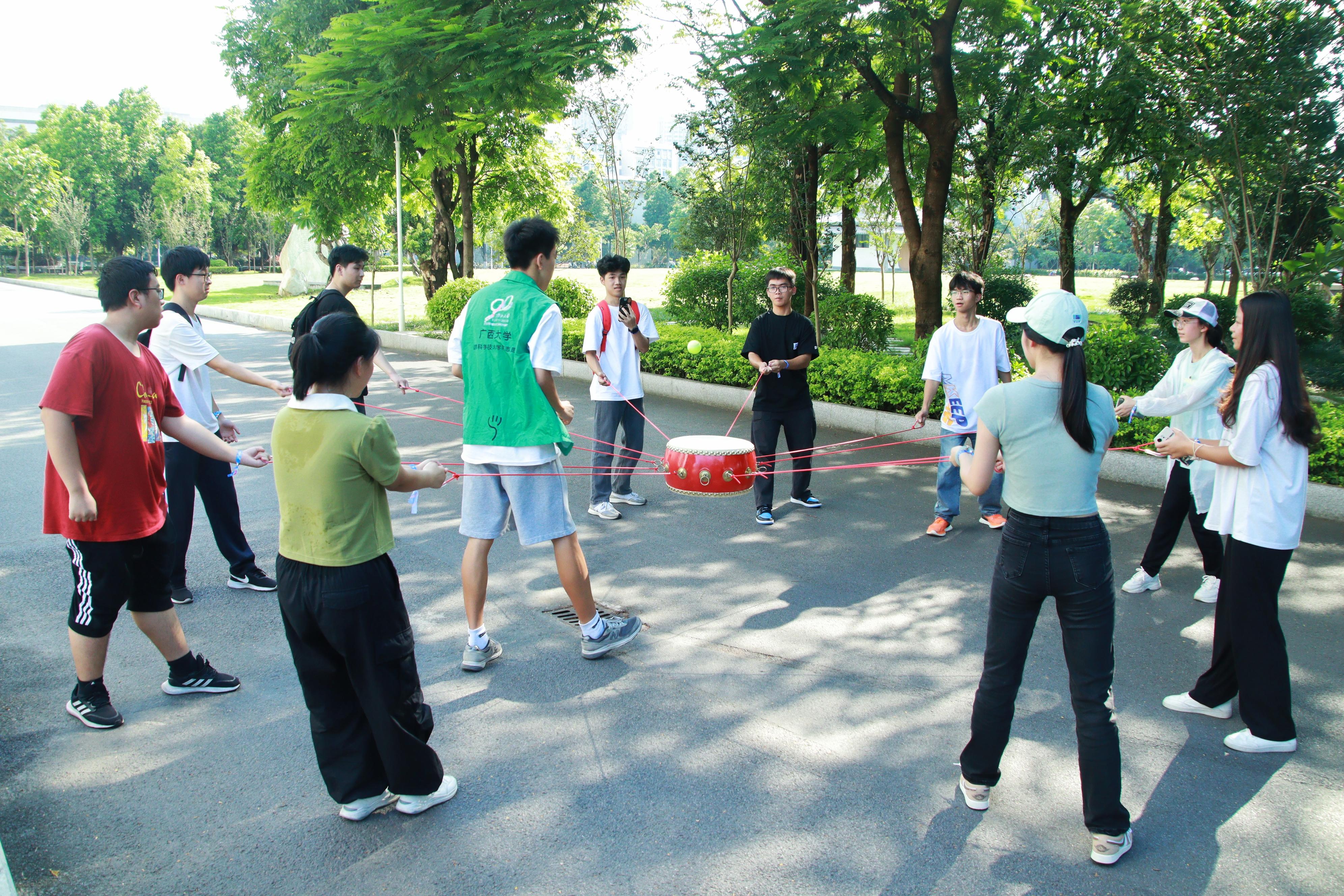 本次活动以游戏为载体,以运动为依托,分别在育才广场、大礼堂、汇学堂、图书馆、老员工活动中心、员工军纪念碑等校园标志性区域设置了6个游戏站点。2023级本科生全员参与,随机分为20组,通过不同路径前往游戏站点,进行了“你的名字”、背篓接绣球、击鼓颠球、无敌风火轮、袋鼠跳、接力长绳等寓教于乐的团队训练项目,使得大家既在轻松有趣的氛围里,以游戏的形式增进了彼此间了解和信任,又在充满挑战的环境中,以团队的方式感受到集体的力量和智慧。