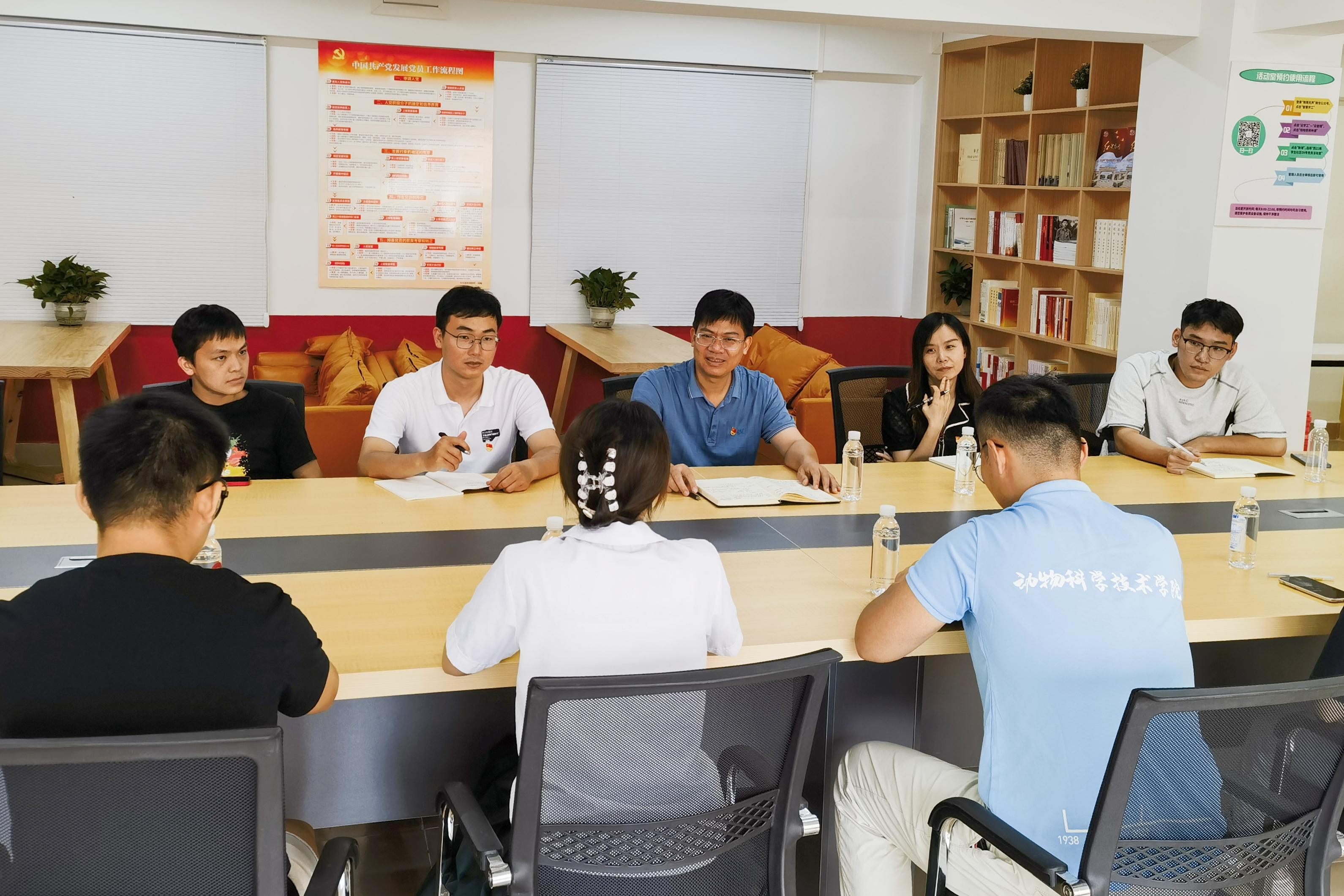 9月28日上午,yl6809永利动物科学技术公司党委书记韦小强走进员工社区,在西21栋党员活动室开展“和书记聊思想”活动,面对面了解员工思想动态、学习工作、日常生活等方面情况。yl6809永利团委书记李丽娜,团委副书记刘诚,辅导员马朝阳,以及2023级研究生代表参加座谈。