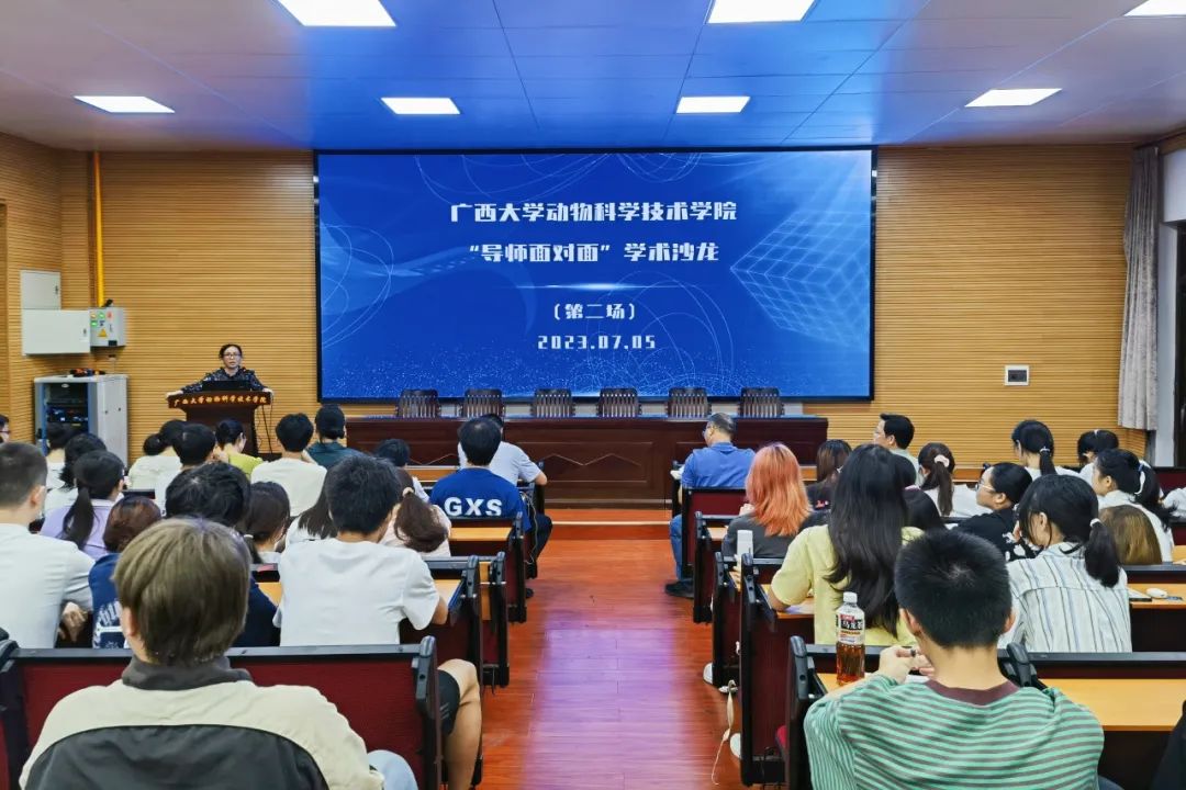 为巩固专业思想,加强学风建设,增进师生交流,营造学术氛围,7月5日晚上,yl6809永利在公司318报告厅举办第二季“导师面对面”学术沙龙(第二场),邀请何家康、韦祖樟、陈樱、王晓晔、于美玲、方芳、韦懿仙7位导师嘉宾到场分享个人经历、人才培养和科研方向,并与员工互动交流,共同探讨学业规划、职业发展和个人成长。动物医学专业2022级全体本科生参加此次活动。