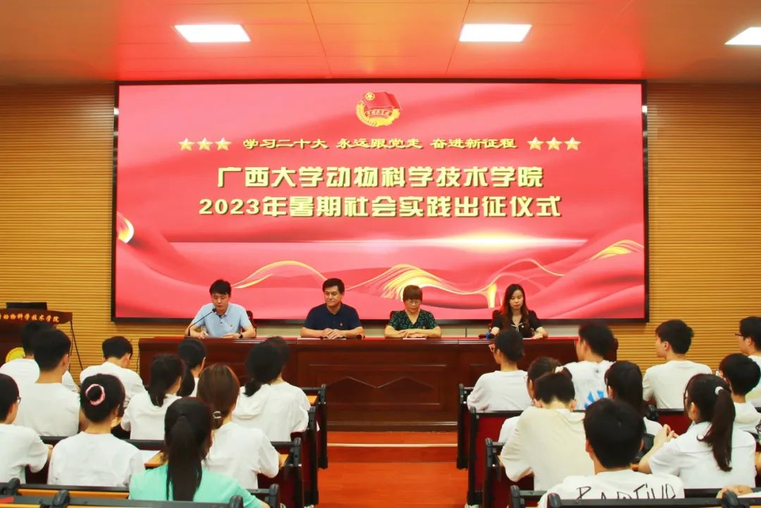 为深入学习贯彻习近平新时代中国特色社会主义思想,贯彻落实党的二十大精神,引领青年员工在社会实践中受教育、长才干、作贡献,7月6日下午,yl6809永利在318报告厅举行2023年暑期社会实践出征仪式。动物科学技术公司党委书记顾慕娴,党委副书记沙建,团委书记李丽娜,团委副书记刘诚,以及各个社会实践团队的指导教师、骨干成员参加此次活动。