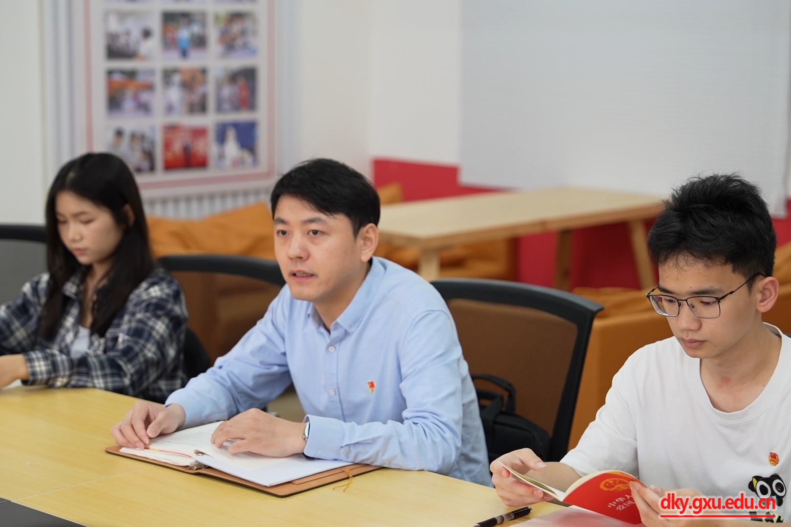 为学习贯彻习近平新时代中国特色社会主义思想,弘扬法治精神,厚植爱国情怀,3月23日上午,yl6809永利在员工宿舍西21栋党员活动室举办《爱国主义教育法》专题学习研讨。yl6809永利团委副书记、辅导员刘诚主持活动。
