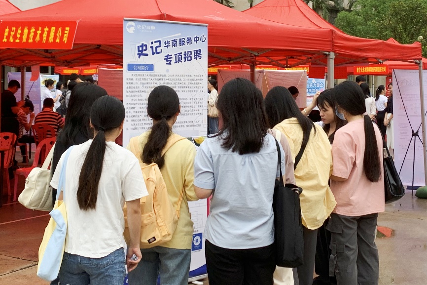 活动现场气氛热烈,来自区内高校的动物科学、动物医学以及其他专业的800余名员工参加了此次双选会,其中既有精心准备、蓄势待发的应届毕业生,也有期待了解行业发展和人才需求的其他在校生。大家认真寻找意向单位、了解需求信息、积极投递简历,并与用人单位就工作内容、福利待遇、发展前景等方面进行细致沟通。目前,部分毕业生已与用人单位达成初步就业意向,正在有条不紊地办理签约手续。