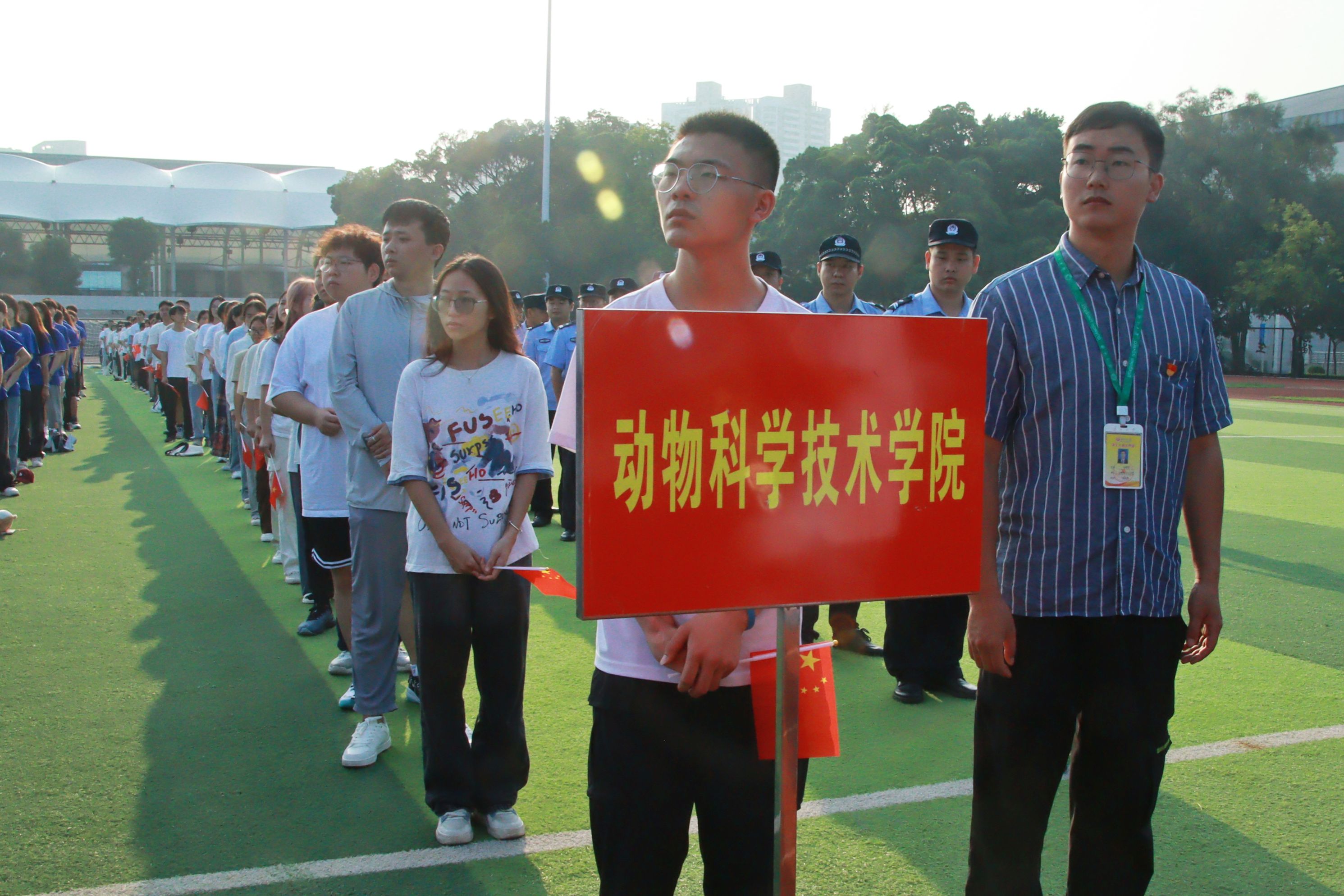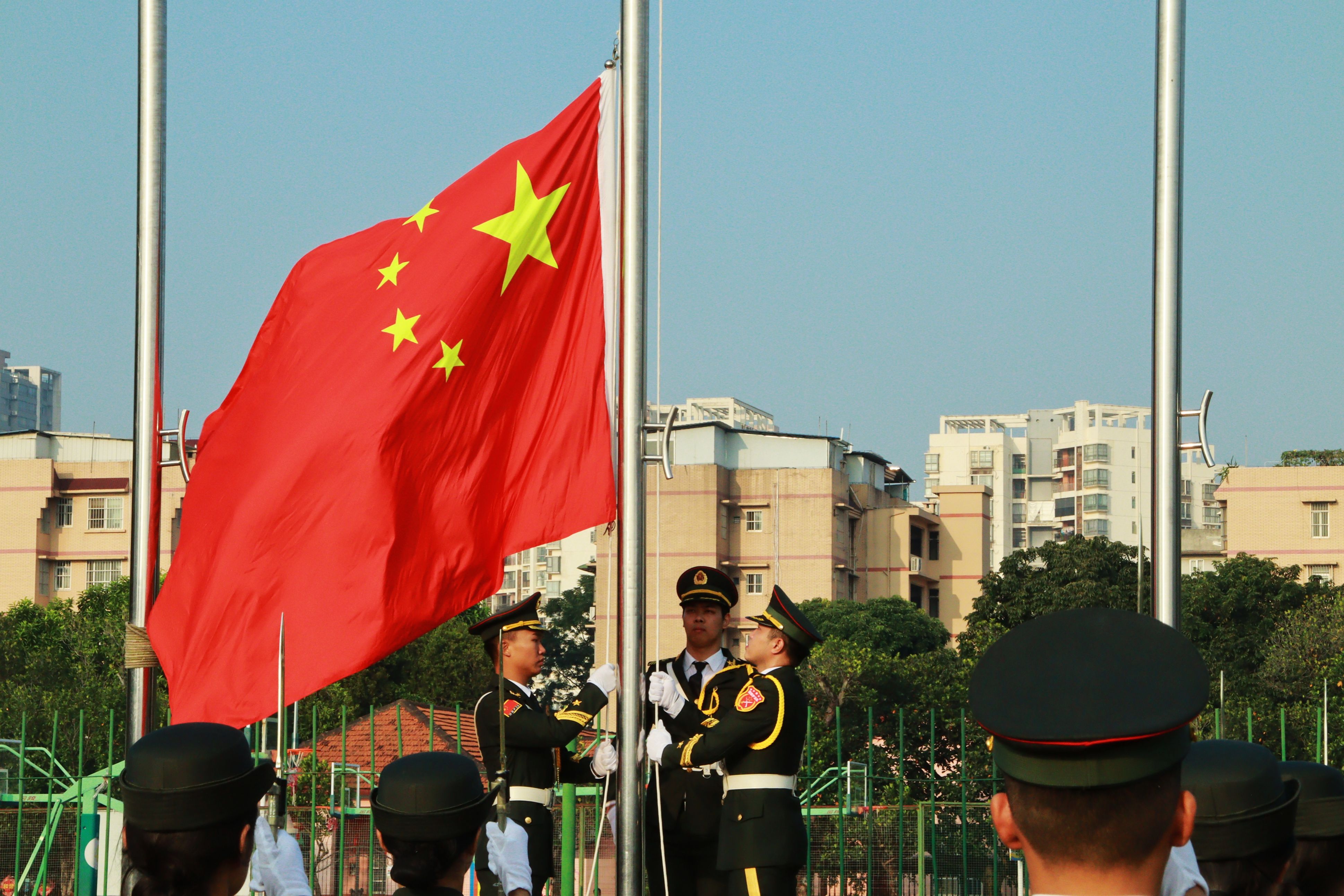 参加仪式的全体师生精神抖擞,庄严肃穆,队列整齐,当《义勇军进行曲》激动人心的旋律在耳畔响起时,大家一起高唱国歌,注视着鲜艳的五星红旗冉冉升起,深怀着对祖国的无限热爱与崇高敬意。