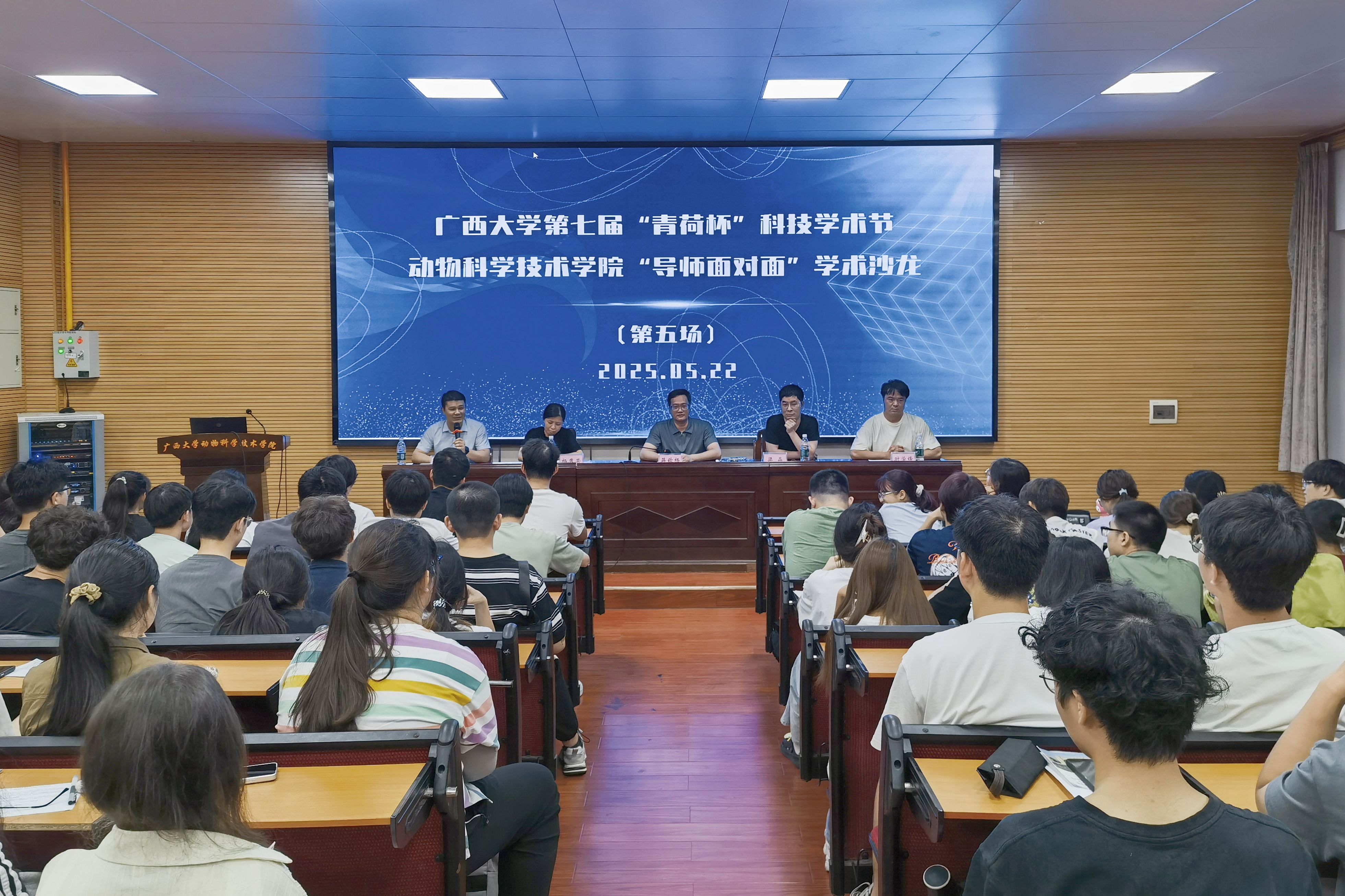 为巩固专业思想,加强学风建设,增进师生交流,营造学术氛围,5月22日晚上,yl6809永利在公司318报告厅举办第三季“导师面对面”学术沙龙(第五场),邀请蒋钦杨、杨秀荣、梁晶、庄站伟、时学锋5位导师嘉宾到场分享个人经历、人才培养和科研方向,并与员工互动交流,共同探讨学业规划、职业发展和个人成长。动物科学专业2024级全体本科生参加此次活动。