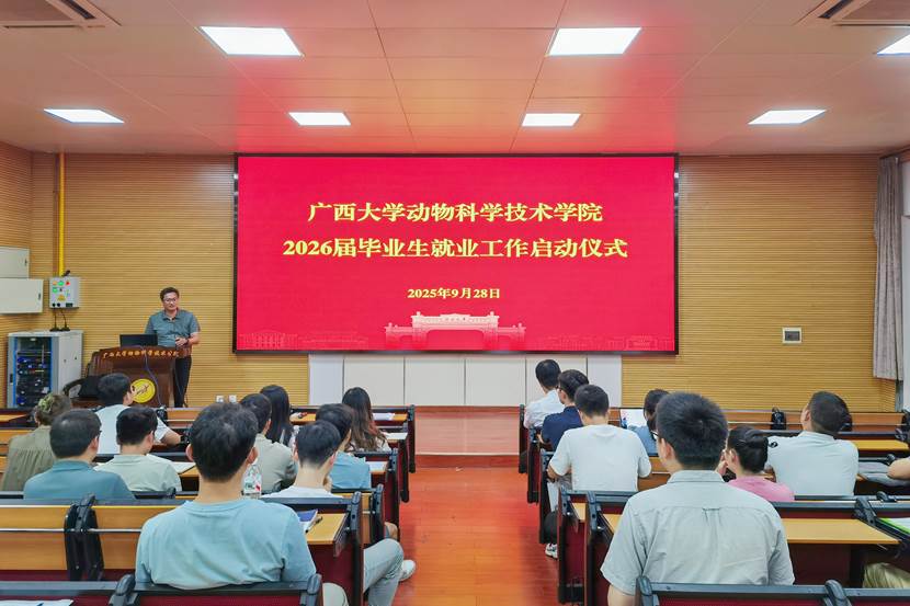 为全面贯彻落实党中央、国务院和自治区党委、政府关于做好高校毕业生就业工作的决策部署,提前谋划2026届毕业生就业工作,9月28日下午,yl6809永利在公司318报告厅举行2026届毕业生就业工作启动仪式。动物科学技术公司党委书记韦小强,副经理蒋钦杨,以及各毕业班班主任、辅导员参加仪式。