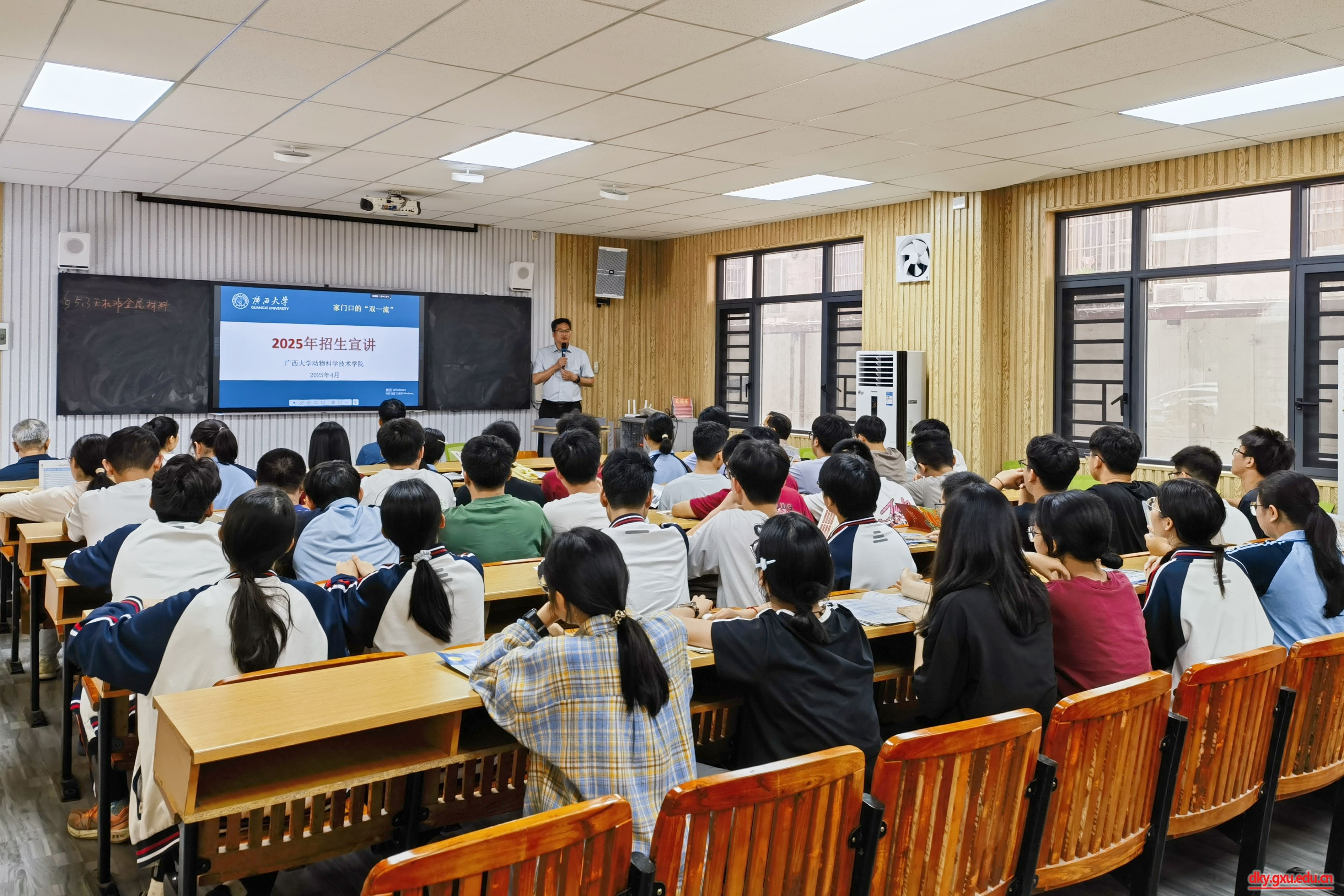 在都安县高级中学,方芳老师以《寄生虫疗法》为题,结合自身科研经历,向同学们展示生物技术的前沿知识和广阔应用,极大激发了大家的学习热情。韦英益老师回顾了自己的求学经历,鼓励同学们努力拼搏,勇敢追梦,实现自己的人生理想。