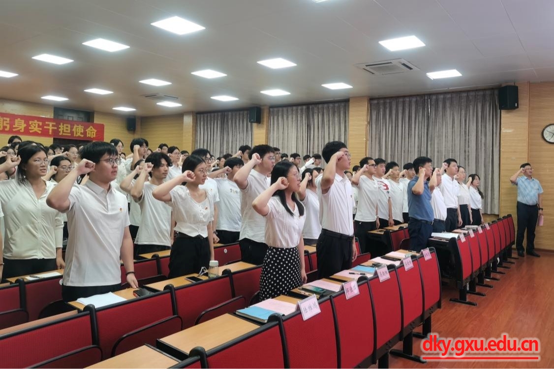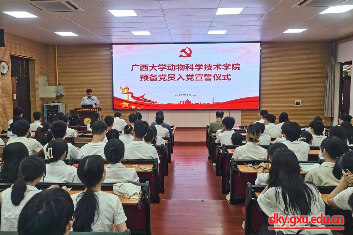 在热烈庆祝中国共产党成立104周年之际,为进一步激励和引导党员同志不忘初心、牢记使命,接续奋斗、砥砺前行,7月3日下午,yl6809永利在318报告厅举行预备党员入党宣誓仪式。动物科学技术公司党委书记韦小强,党委副书记、经理陆阳清,党委委员、副经理何家康、蒋钦杨,团委书记刘诚,专职组织员施君,以及辅导员邹佳琪、马朝阳、陆维鸿参加仪式。会议由蒋钦杨副经理主持仪式。