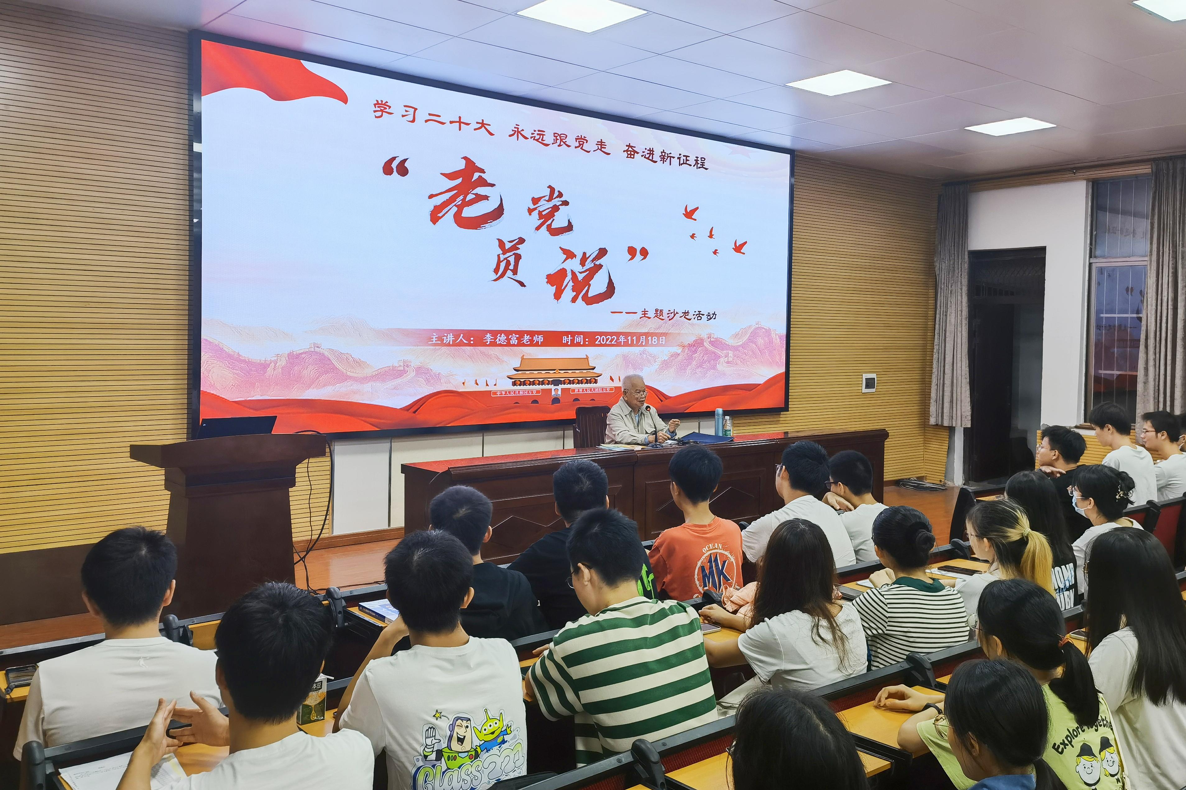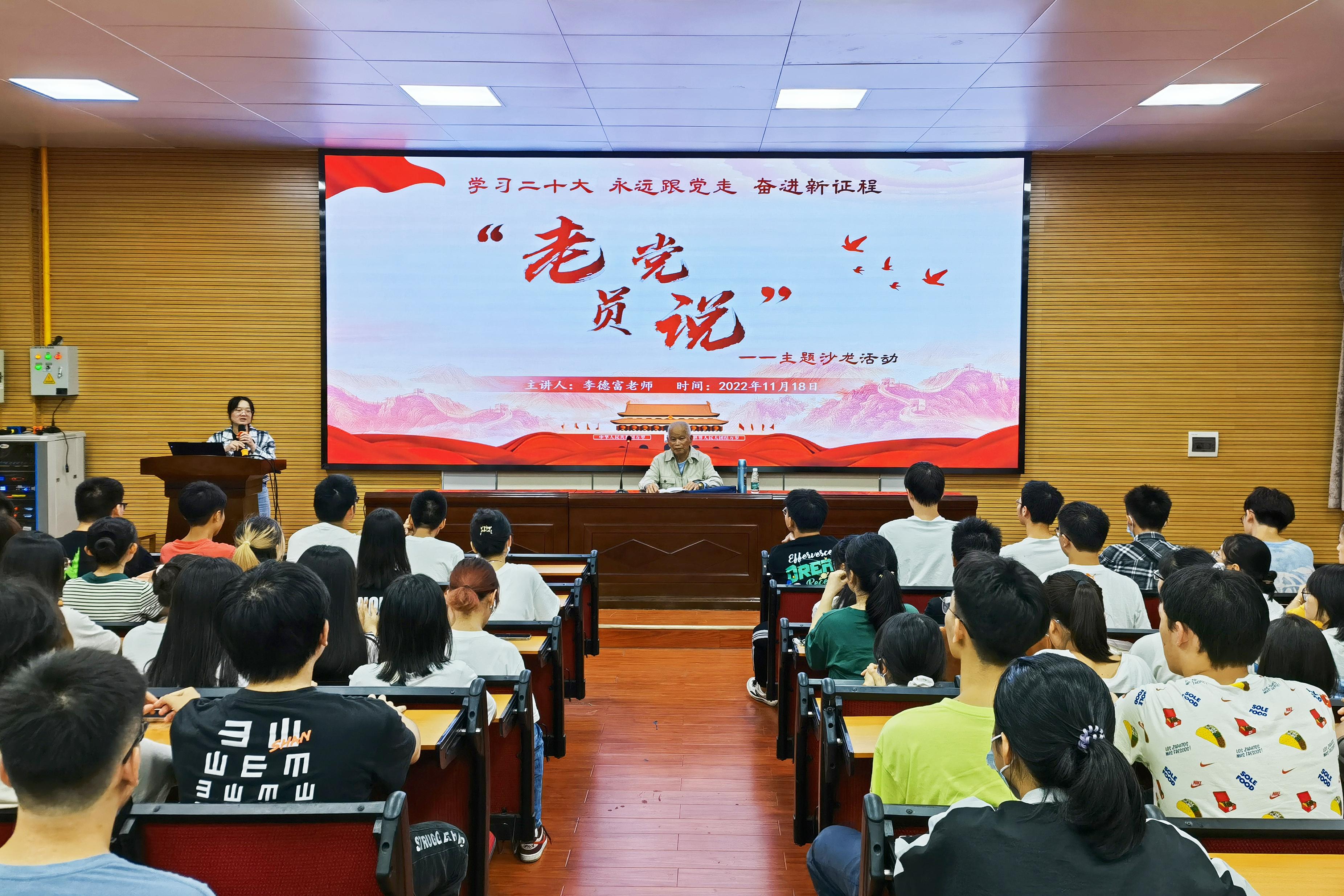 为更好地引领广大团员青年“向英雄学习、向前辈学习、向榜样学习”,推进党史学习教育常态化、长效化,11月18日晚上,yl6809永利在公司318报告厅举办第二期“老党员说”主题沙龙活动。yl6809永利关心下一代工作委员会原副主任、退休老党员李德富教授受邀主讲。yl6809永利团委书记李丽娜,团委副书记刘诚,辅导员韦春丽,以及全体2022级本科生参加此次活动。