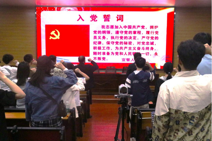 最后,彭可可老师对宣誓仪式进行总结并对同学们提出以下期望:牢记入党誓词,坚定理想信念。在今后的学习和工作岗位当中,要自觉增强党性观念,增强党员的历史使命感和社会责任感,牢记党的宗旨。要自觉深入学习贯彻党的二十大精神,认真开展主题教育,牢牢把握主题教育“学思想、强党性、重实践、建新功”的总目标,在本职工作当中发挥先锋模范作用,进一步弘扬奉献精神,做一名称职的、合格的共产党员。