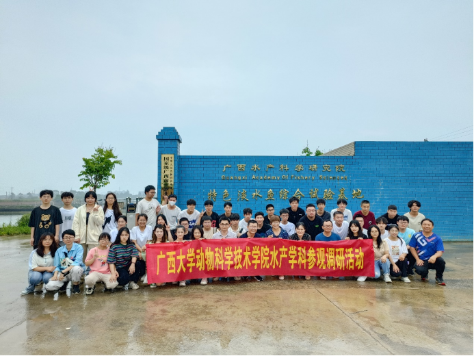 2023年6月9日上午,由动物科学技术公司党委书记顾慕娴亲自带队,水产学科带头人潘英教授及青年教师欧伟豪博士协助组织,带领2022级动物科学专业本科生40人到武鸣水产基地依次参观调研了广西水产科学研究院特色淡水鱼综合试验基地、广西巴马鑫坚实业集团有限公司养殖基地、广西水产引育种中心罗非鱼良种场等3个武鸣基地。