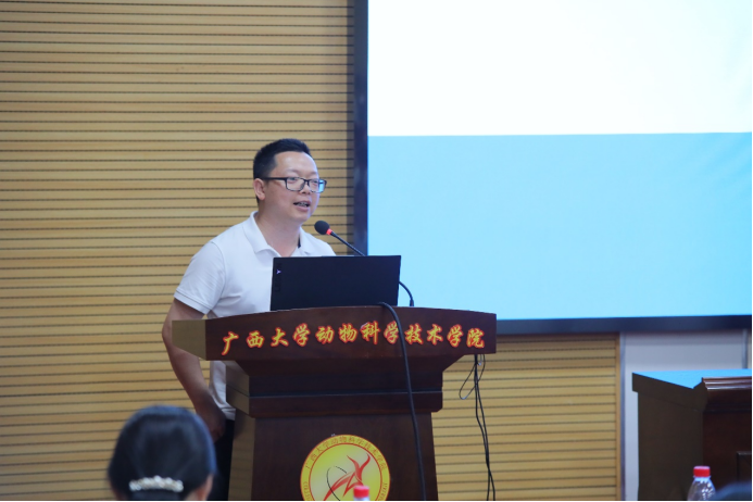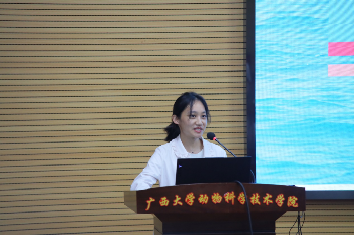 随后,广西水产科学研究院经理罗永巨、广西芳草安桂生物科技有限公司总经理欧阳贤华、南宁海大生物科技有限公司水产线总经理黄东三位西大水产优秀员工,分别从广西水产行业概况、未来发展趋势、个人成长经历等多角度多方面为同学们传递水产行业的详实信息。水产青年教师欧伟豪博士也分享了水产特色班小班教学的优势,直言个性化教育的重要性,希望能把西大水产传承和发展壮大起来。最后,在本科生导师制课程中选择了水产教师作为导师的2019级动科本科生周尚永同学,水产211班的在读研究生吴耀庭和杜安凤同学为同学们介绍自己在水产养殖专业学习中精彩丰富的学习和实习经历,并热切欢迎大家加入水产大家庭。