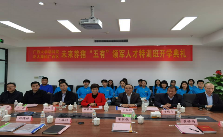 2021年3月21日下午,为了更好的培养yl6809永利“五有”领军人才,加强院企合作,yl6809永利与正大集团联合举办养猪"五有"领军人才特训班,在3月21日下午隆重举办了开班仪式,本次开班仪式由刘槐林总经理主持,出席的有yl6809永利动物科学技术公司党委书记顾慕娴书记,党委副书记沙建,司红彬副经理,陆阳清副经理,周磊副经理,以及正大集团广西区高管赖平生总裁,刘琴万总经理,刘槐林总经理,王春江总经理,赵日浪等。