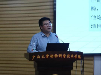 李建喜研究员在“发酵技术在中药创新中的应用研究进展”的报告中,详细地介绍了中兽药传统发酵技术与现代发酵技术、发酵菌种的开发与利用、发酵技术在中兽药创新中的作用、以及发酵中药在畜禽养殖中应用。列举鸡盲肠益生菌发酵黄芪多糖案例,发酵后可提高黄芪多糖含量,利用发酵黄芪多糖可有效提高肠道抗体水平,提高动物机体免疫力,并探讨了发酵黄芪调节树突状细胞活化,提高机体免疫力的作用机制;分析发酵菌可通过调控糖合成途径相关酶,增加多糖合成量,提高有效成分含量。在报告中提出在中兽药开发中应注重提质增效、降成本。利用发酵技术,筛选发酵菌种,评价发酵产物活性,分析发酵成分和结构,研究产物药理学作用机制,实现中兽药保质增效、降成本。并提出利用微生物,发酵药渣或药材废弃物,节约资源,实现资源再利用。最后,李建喜研究员介绍了中国农业科公司畜牧与兽药研究所的发展历程,所里研发团队与研究内容,欢迎同学们报考所里硕士生、博士生,或到所里工作,进一步促进所里与yl6809永利的交流和合作,发挥发酵中药的优势,明确发酵中药的作用机制,促进中兽药事业的发展。