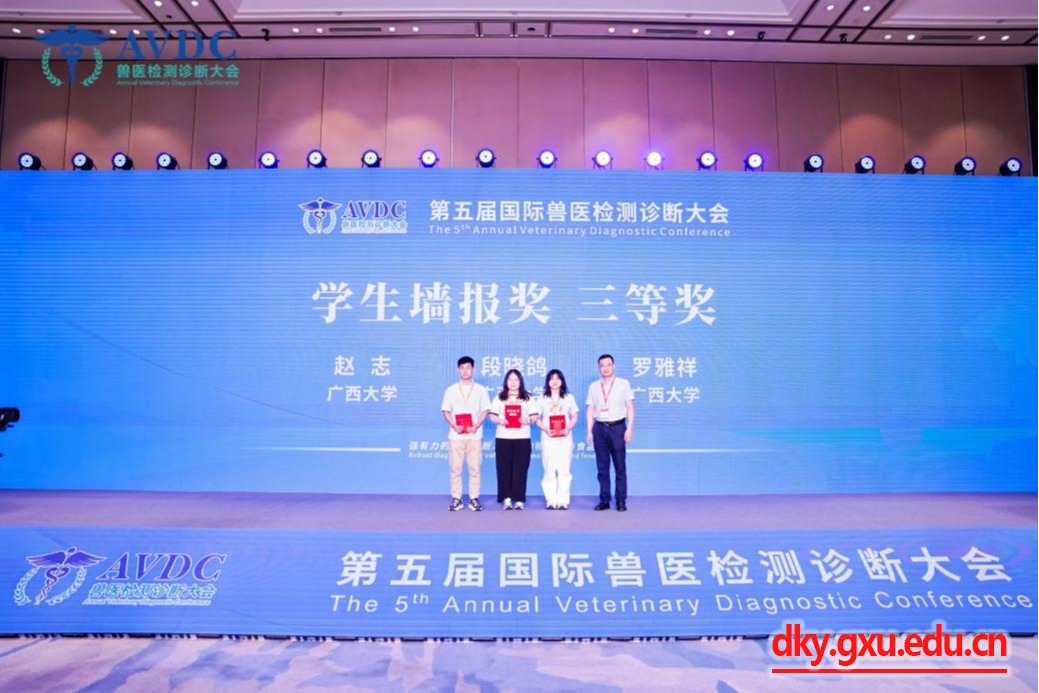 来自中国、美国、英国、荷兰、加拿大、澳大利亚、日本、韩国等国家的120多位嘉宾,为参会代表带来了128场精彩纷呈、内容丰富的主题报告,与广大参会代表分享自己在兽医诊断领域的独到见解和宝贵经验。借此机会,陈海兰教授一行与汇报嘉宾、国际知名专家对兽医检测诊断领域前沿问题进行了积极的交流和探讨,努力推进公司与国内外高校和企业的合作。公司贺兆源等五位研究生所投稿件均被大会录用于大会论文集并以墙报形式向参会同行展示。初步评选后,贺兆源、赵志、段晓鸽和罗雅祥四位同学的墙报进入第二轮现场口头汇报。经过美国堪萨斯洲立大学白建法教授等专家组成的评审委员会从研究深度、应用前景、汇报表现等方面进行综合打分评选后,本次大会所设3个墙报展示三等奖被公司的赵志、段晓鸽和罗雅祥3位研究生包揽,为公司赢得了荣誉和认可。