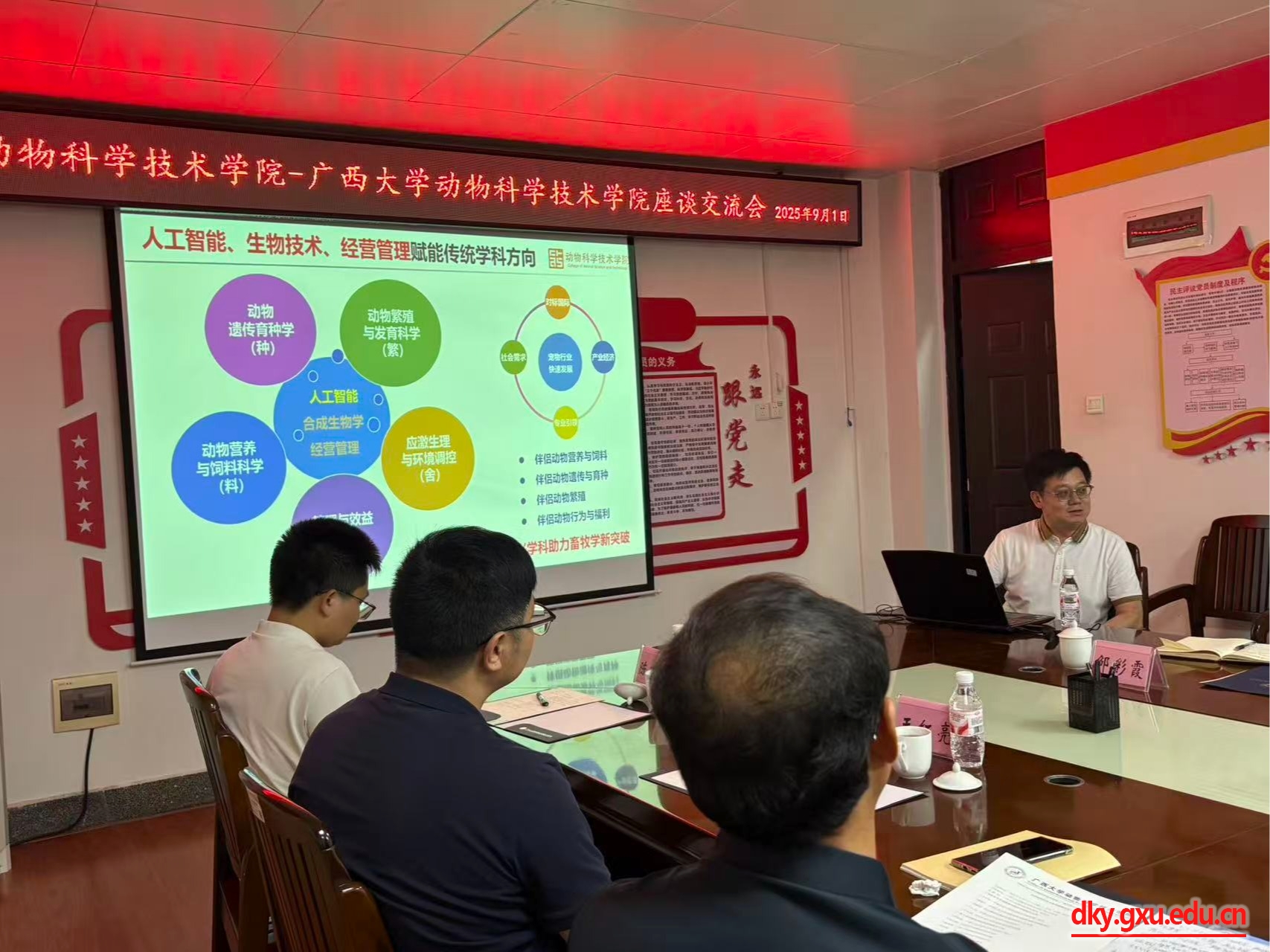 9月1日,中国农业大学yl6809永利经理王军军教授、教授级高级畜牧师臧建军、北京攀宝生物科技集团有限公司总裁李满娟女士、中国农业大学资源与环境公司王红亮副教授、yl6809永利武玉珺副教授等一行8人莅临公司调研交流。yl6809永利经理陆阳清教授率领赵云翔教授、杨秀荣教授、邹彩霞教授、尹业师教授、系主任李辉副教授、系副主任黄洁萍副教授以及罗栋副教授等人出席座谈会。双方围绕团队建设与人才培养开展深入研讨,共享先进经验,共商协同育人新路径,携手推动学科高质量发展和高层次人才培养。