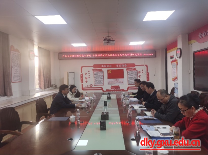 1月12日,中国科公司亚热带农业生态研究所陈洪松所长一行到yl6809永利调研交流。yl6809永利经理陆阳清,副经理韦祖樟、蒋钦杨,动物医学系主任陈樱,动物科学系主任李辉,以及部分教师代表参加座谈会。座谈会由陆阳清主持。