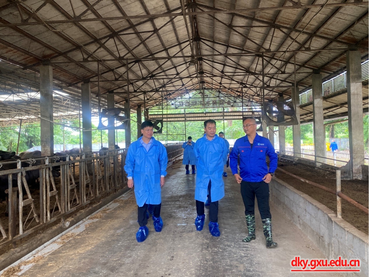 韦小强一行分别走访参观了广西皇氏集团中巴奶水牛繁育示范牧场、广西创亿养殖有限公司、广西立腾农牧发展有限公司,与公司负责人座谈交流,深度了解用人单位对毕业生的知识、能力、素质要求,双方就建立日常联系互访机制,“校、地、企”联合育人,产学研相互促进等方面达成共识。