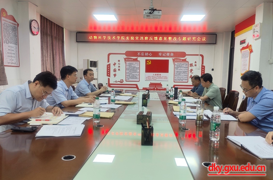 On the afternoon of July 12, the College of Animal Science and Technology held a party committee meeting to study the rectification plan for the feedback from the laboratory inspection. The party committee secretary Wei Xiaoqiang, dean Lu Yangqing, deputy party committee secretary Sha Jian, and vice deans Ning Pengfei, He Jiakang, and Jiang Qinyang attended the meeting. The meeting was chaired by the party committee secretary Wei Xiaoqiang.
