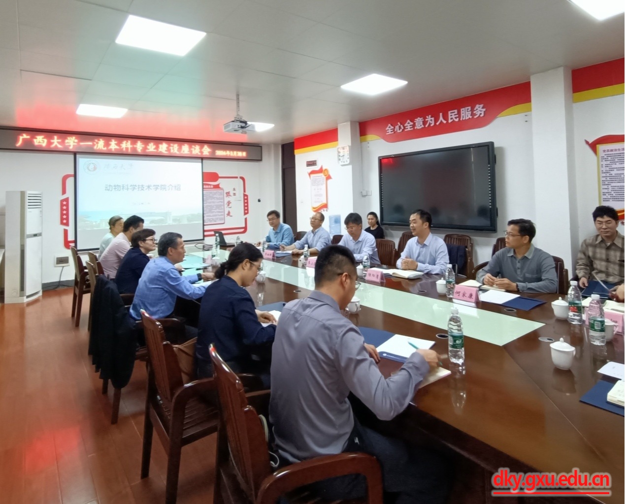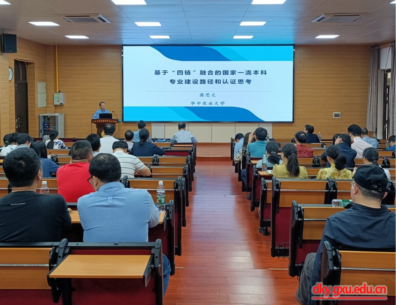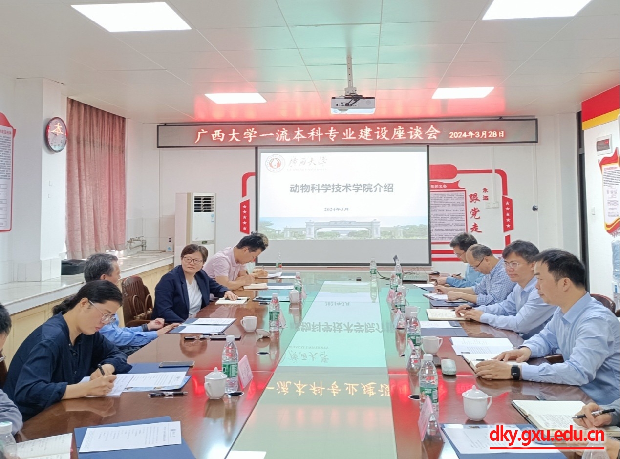 In order to accelerate the construction of first-class undergraduate majors in Guangxi University, standardize the construction and management of undergraduate majors, further improve the level of undergraduate major construction, and continuously improve the teaching quality, the College of Animal Science and Technology held a symposium and special report meeting on the construction of first-class majors on the morning of March 28. The meeting specially invited Professor Jiang Siwen, Secretary-General of the Teaching Guidance Committee of Animal Production Majors in Higher Education Institutions of the Ministry of Education and Professor of Huazhong Agricultural University, to visit our school for a discussion and give a keynote report to guide the construction of national and regional first-class undergraduate majors in Guangxi University.