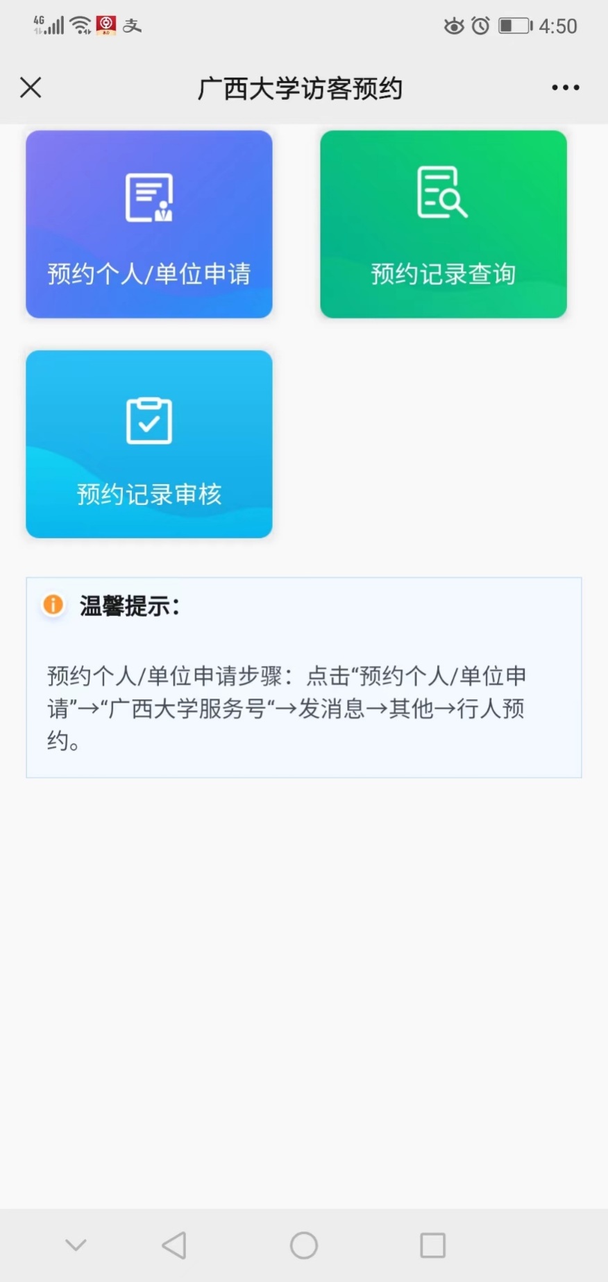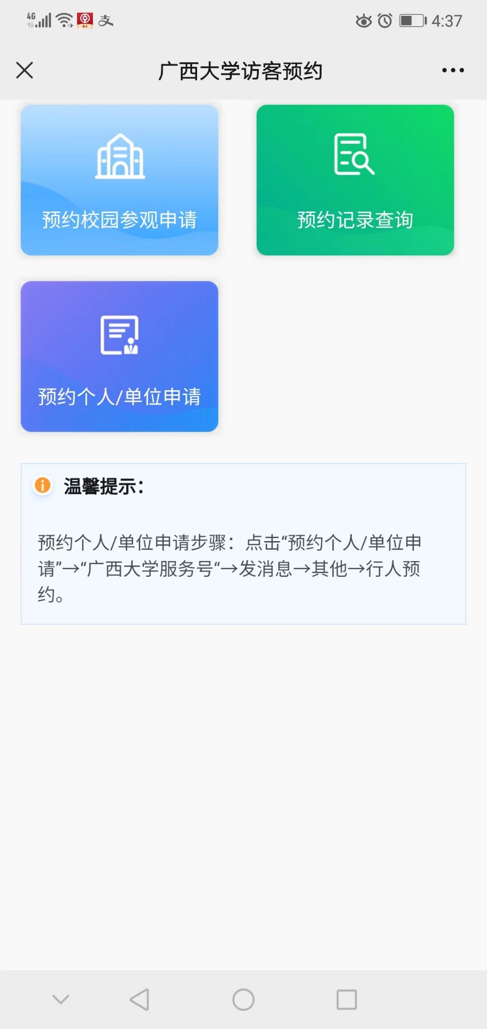 微信扫描“校园参观预约”二维码,进入界面