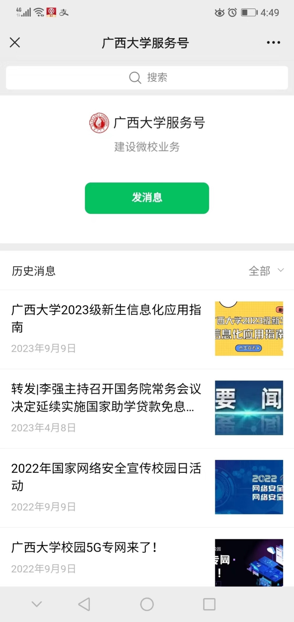 点击绿色“发信息”按钮,系统跳转至行人预约进出校园申请界面